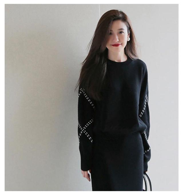 ニットセットアップ ニットセットアップ スカートスーツ ニット カジュアル ニットセーター スカート 長袖 セーター セットアップ セットアップ 無地 ロング丈 オシャレ 上品 韓国風 カジュアル 2点セット オフィス ベージュ ブラック