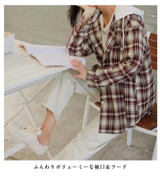 | アウターライクに着こなせるフード付きチェックシャツ ゆったりとしたワイドシルエットが特徴のフード付きシャツが登場。 ふんわりボリューミーな袖口&フード 前後差をつけたラウンド裾でお尻周りもオシャレにカバー オーバーサイズが抜け感たっぷりで、シンプルなコーデのアクセントにも◎ さらっと羽織れて、季節の変わり目のライトアウターとしても重宝します。 | |