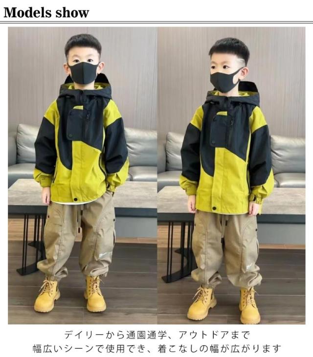 マウンテンパーカー 子供服 長袖 キッズ 男の子 キッズ 撥水 アウター キッズ 女の子 キッズコート 子供服 ジャンパー ウインドブレーカー 羽織り 上着 フード付き ジャケット 子ども服 キッズ服 ジップアップ 配色 おしゃれ ポケット