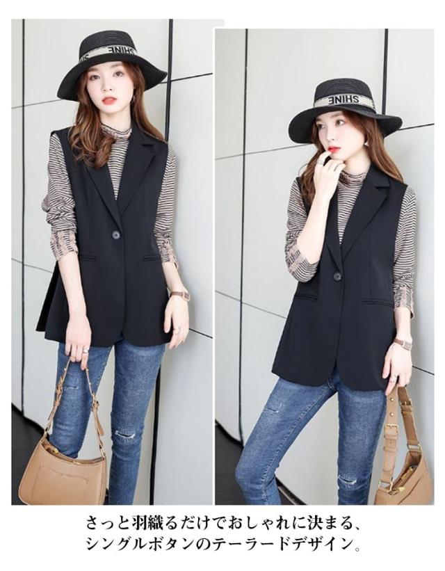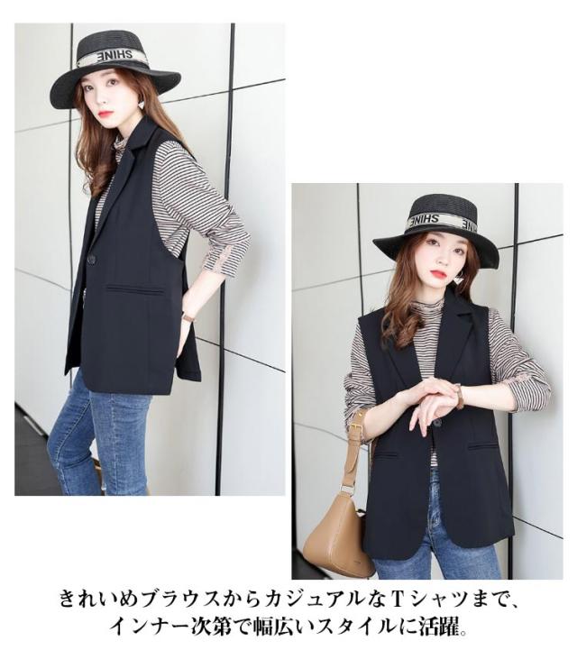 ダブル ジレ 春 羽織り テーラード ジレ 夏 ノーカラー ロング ジレ シンプル レディース トップス ベスト フォーマル ベスト テーラードベスト スーツノースリーブ 羽織 レイヤード 前開き 無地 きれいめ カジュアル シングル フェミニン 20代 30代