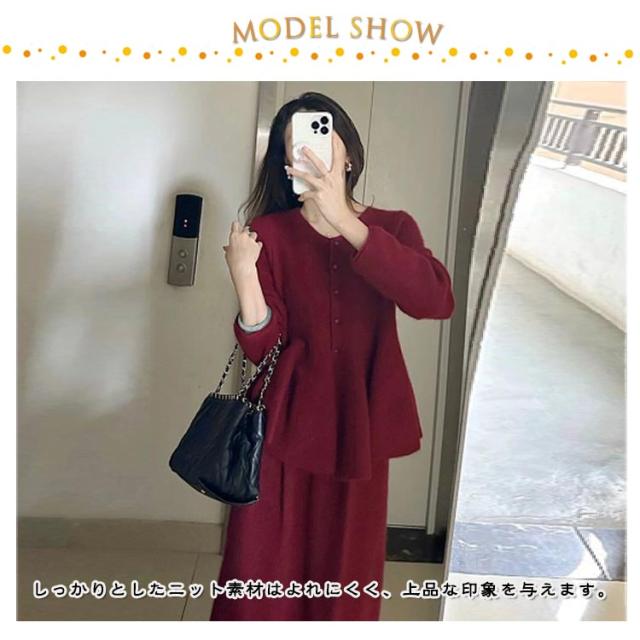 プルオーバー 上下セット 卒業式 ペプラム 七五三 お宮参り レディース ペプラム ロングスカート フォーマル 卒園式 ママスーツ カーディガン セットアップ ニット トップス カーデ スカート オフィス 長袖 入学式 卒業式 ママ コーデ