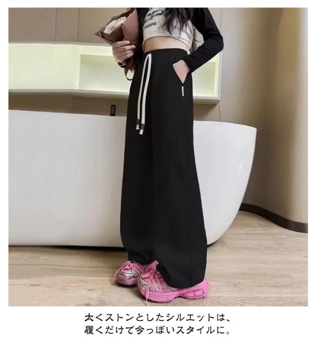 男の子 ガールズ 子供服 ワイドパンツ 女の子 ワイドパンツ スウェットパンツ シンプル ゆったり キッズ スポーツ おしゃれ カーブパンツ ボトムス パンツ 長ズボン 春秋 120 130 140 150 160 170cm かわいい トレンド ワイド