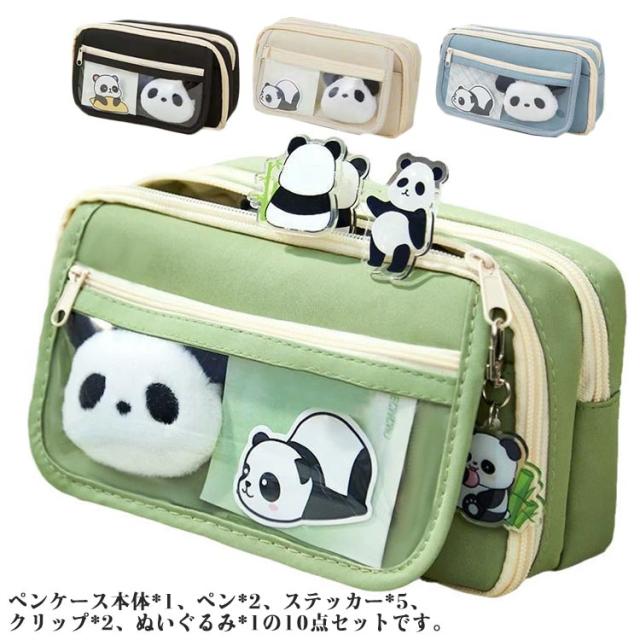 筆箱 高校生 ペンケース ペンケース 男の子 10点セット ペン付き パンダ クッリプ付き ぬいぐるみ付き 高校生 ステッカー付き 女の子 筆入れ ペンポーチ 中学生 多機能 大学生 多機能可愛い プレゼント