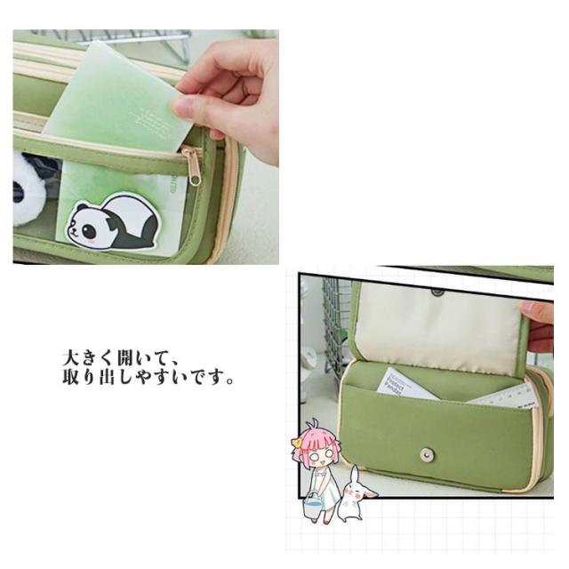 | ペンケース本体*1、ペン*2、ステッカー*5、クリップ*2、ぬいぐるみ*1の10点セットです。 しっかり素材で作られた、耐久性が高い、長くご愛用できます。 大容量の収納、最大80本のペンを収納できます。 大きく開いて、取り出しやすいです。 空間はもっと大きく、分類していくつかの小物を収納しても余裕があります。 大学生、高校生、中学生、小学生、社会人向けのペンケースです。 | |
