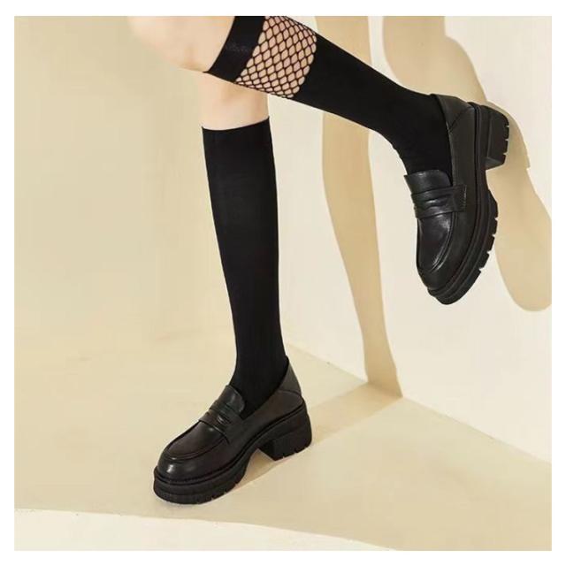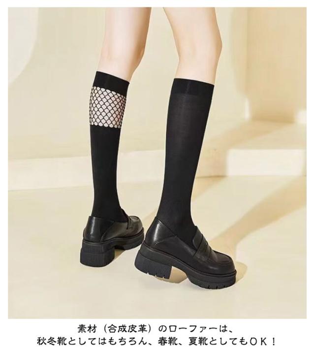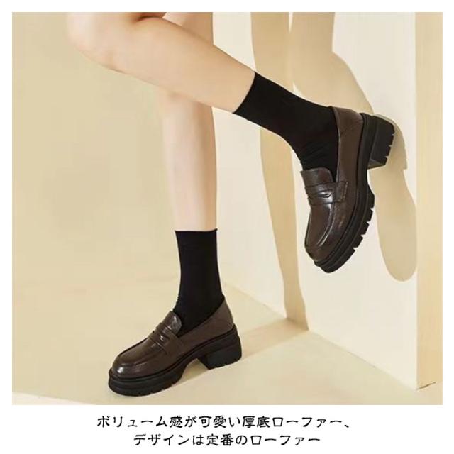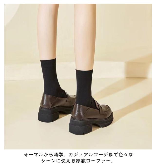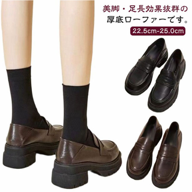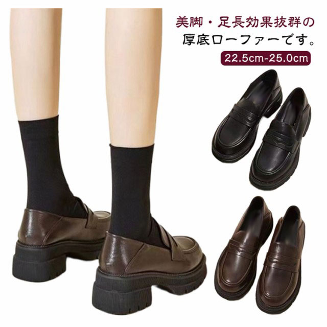 | 美脚・足長効果抜群の厚底ローファーです。 靴底にもしっかり滑り止めが着いているので滑りにくく年中履ける優れ物。 ボリューム感が可愛い厚底ローファー、デザインは定番のローファー ォーマルから通学、カジュアルコーデまで色々なシーンに使える厚底ローファー。 素材(合成皮革)のローファーは、秋冬靴としてはもちろん、春靴、夏靴としてもOK! 足に馴染む柔らさは圧迫による足の負担も少ないため、電車で立っている時間が長い方にもオススメです。 | |