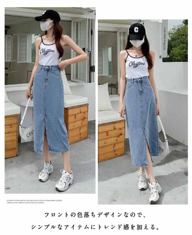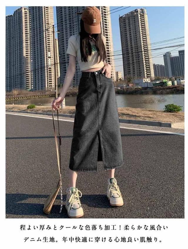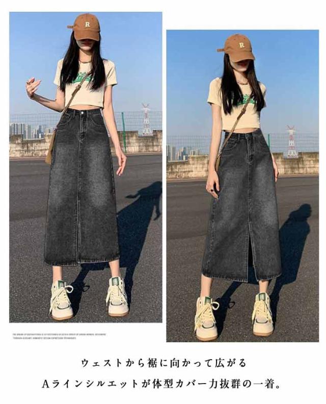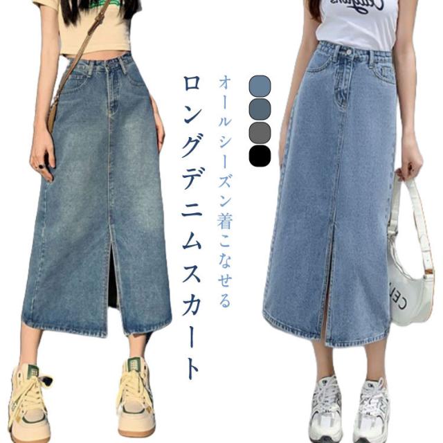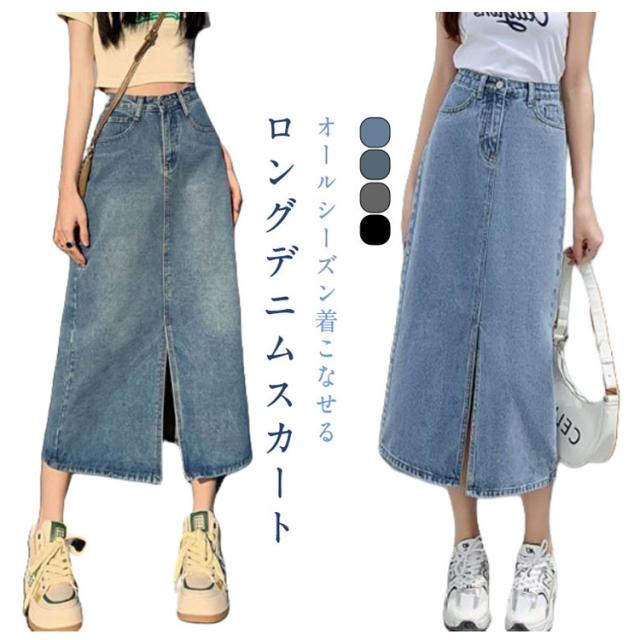 デニムスカート お洒落 ロング丈スカート 無地 ロング丈 スリット ボトムス きれいめ カジュアル ロングスカート レディース フェミニン デニムスカート レトロ ヴィンテージ風 美脚 着?せ 体型カバー 大きいサイズ 春 夏 秋 大人女性
