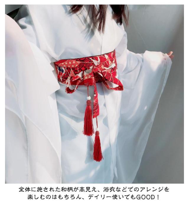和風 和柄 帯 浴衣 帯ベルト ベルト帯 和風ベルト 太ベルト 鶴 着物 おしゃれ サッシュベルト 大人 和風 送料無料 衣装 帯風ウエストベルト コルセット ウエストマーク レディース フリンジ タッセル サッシュベルト帯 浴衣帯