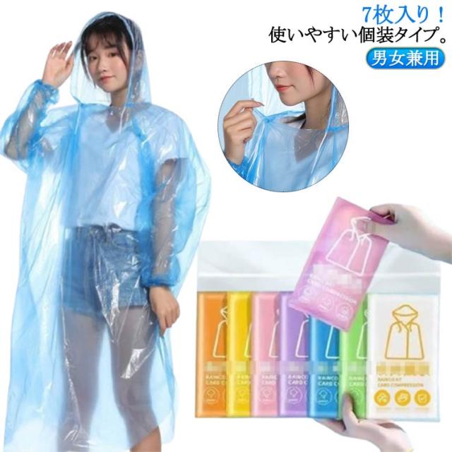 使い捨てレインコート レインコート 使い捨て 大人用 PE 防水 雨がっぱ 大人 レインコート レインコート 緊急 雨具 レインコート キャンプ レインコート 7枚入り 釣り カッパ 登山 ガーデニング 男女兼用 便利グッズ