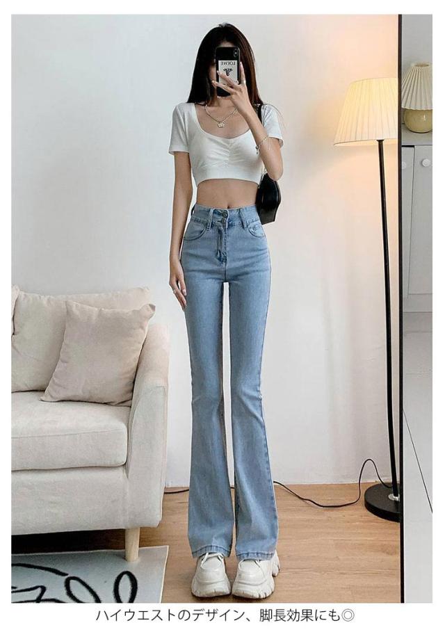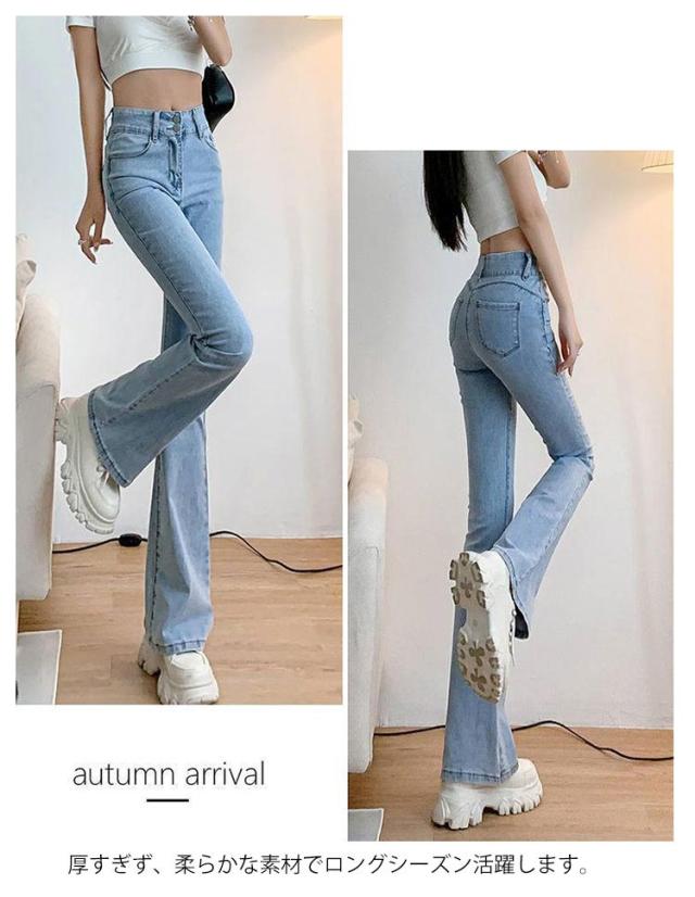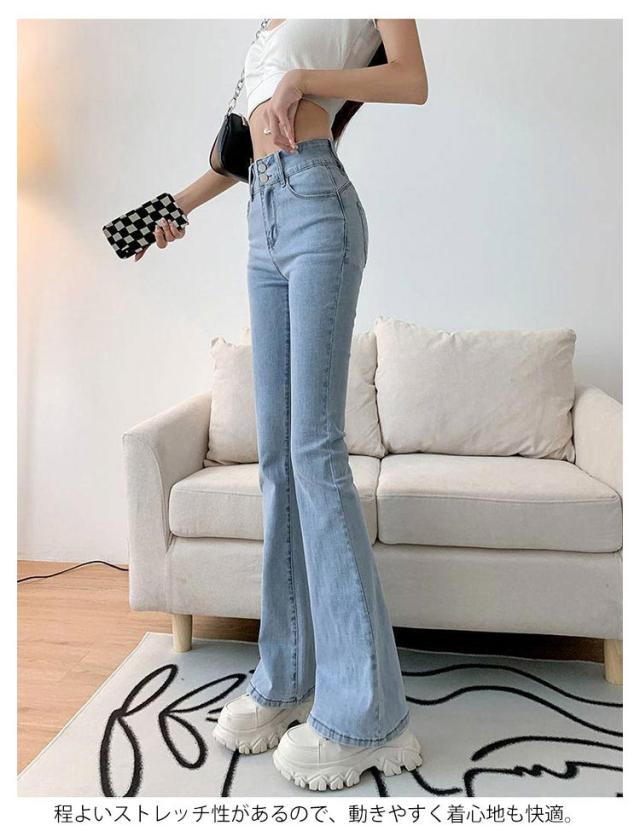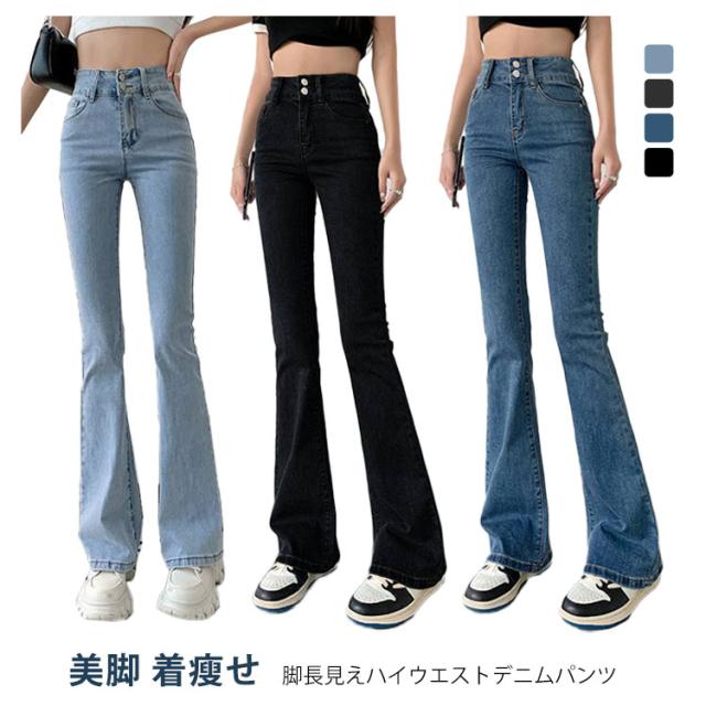 フレア 冬 フレアパンツ ハイウエスト 春 ストレッチ ジーンズ 春 ロングパンツ フレアパンツ デニム 着?せ ジーパン デニムパンツ レディース ボトムス 美脚 フレアデニムパンツ 大きいサイズ 無地 カジュアル おしゃれ 大人女性
