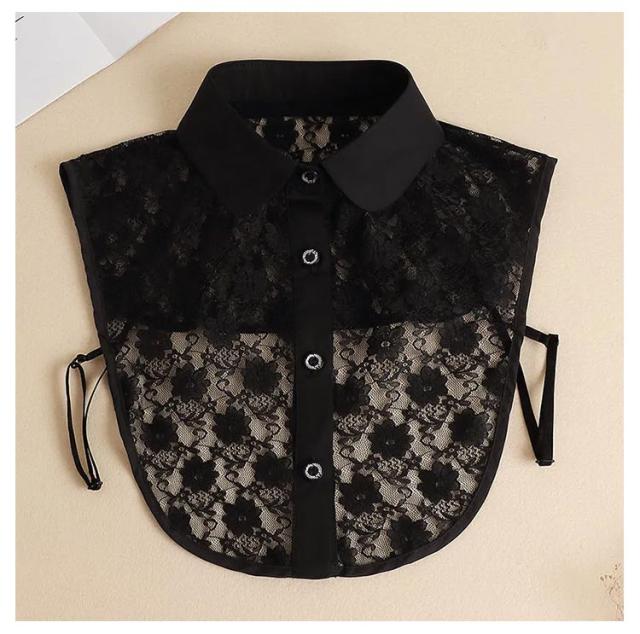 | 簡単コーデ力アップの付け襟。 レースと花柄飾りの組み合わせでお洒落度アップ! お色はブラック ホワイトをご用意いたしております。 シンプルなトップスにinするだけでコーデ完成! この付け襟を使えば簡単にコーデの幅を広げおしゃれに魅せる事ができちゃうんです。 襟元のおしゃれを楽しく!お手持ちのアイテムにプラスするつけ襟。 オールシーズン着用できるのも嬉しいポイント。お手持ちのコーディネイトにオススメの1枚です。 | |