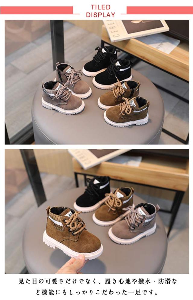 | 見た目の可愛さだけでなく、履き心地や撥水・防滑など機能にもしっかりこだわった一足です。 男女兼用ですので、男の子はもちろん、女の子が履いてもクールで格好いいです。 つま先部分は広く取ったラウンドトゥを採用して、足の指を自由に動かせるので快適な歩行が可能です。長時間歩いても痛くにくいです。 編みあげブーツなのに、靴紐をほどいたり結んだりせずに、楽に脱ぎ履きできます。また、ファスナーがスムーズで、小さなお子様でも簡単に着脱できます。 普段履きにはもちろん、七五三、発表会、入学式、卒園卒業、ハロウィン、クリスマスなど、様々な記念日やお祝いの場で大活躍します。 | |