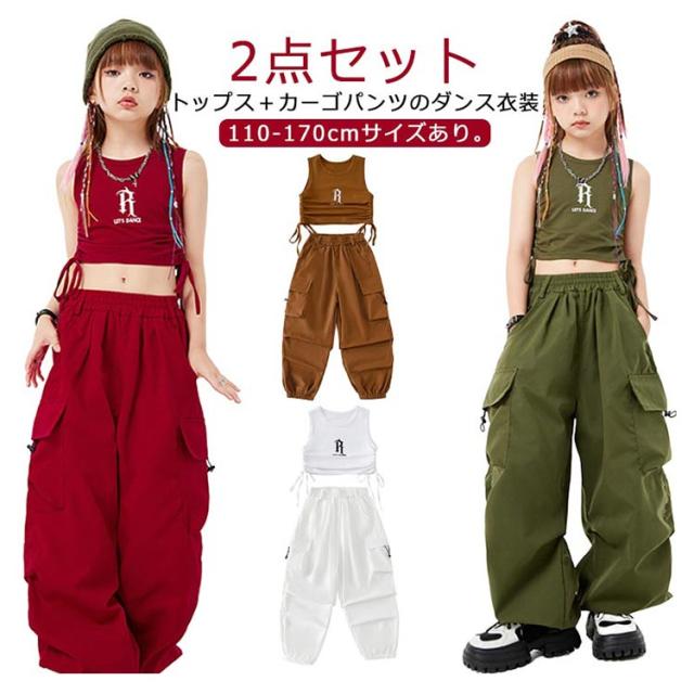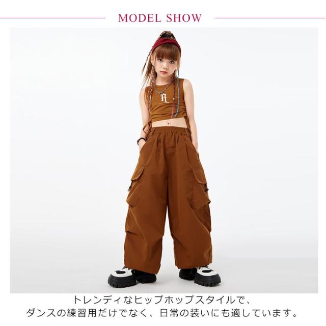 | 【トップス+カーゴパンツ】のダンス衣装2点セット!110-170cmサイズあり。 トレンディなヒップホップスタイルで、ダンスの練習用だけでなく、日常の装いにも適しています。 トップスはへそを露出するファッションで自然とスタイルがよく見えるデザインになっています。 トップスは柔らかいコットン混素材で作られて、肌触りが良い、通気性はもちろん、肌に優しいです。 パンツは今年らしいシャカシャカとした素材感で軽くてライトな手触り。 ロングパンツはポケットが付き、小物の出し入れとか便利。ダボダボシルエットで動きやすくて、カジュアルなデザインでスクールから練習室の行き帰り、日常使いまでも幅広く使える。 | |