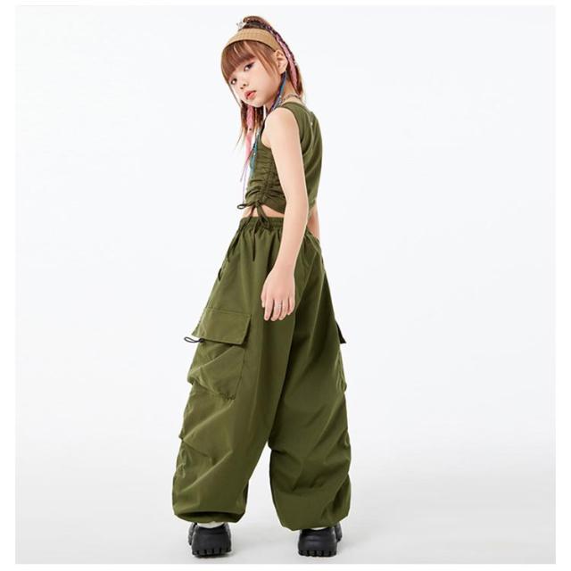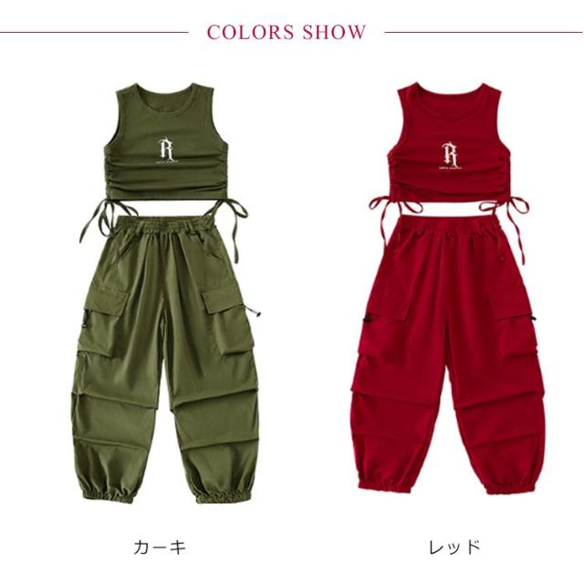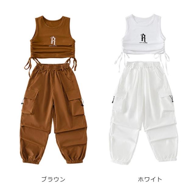キッズ セットアップ 上下セット ダンス衣装 ノースリーブ トップス hiphop へそ出し 韓国 練習着 ダンスウェア 女の子 ヒップホップ ガールズ ジャズダンス ジュニア 子供 演出服 応援団 団体服 キッズ jazz 大きいサイズ
