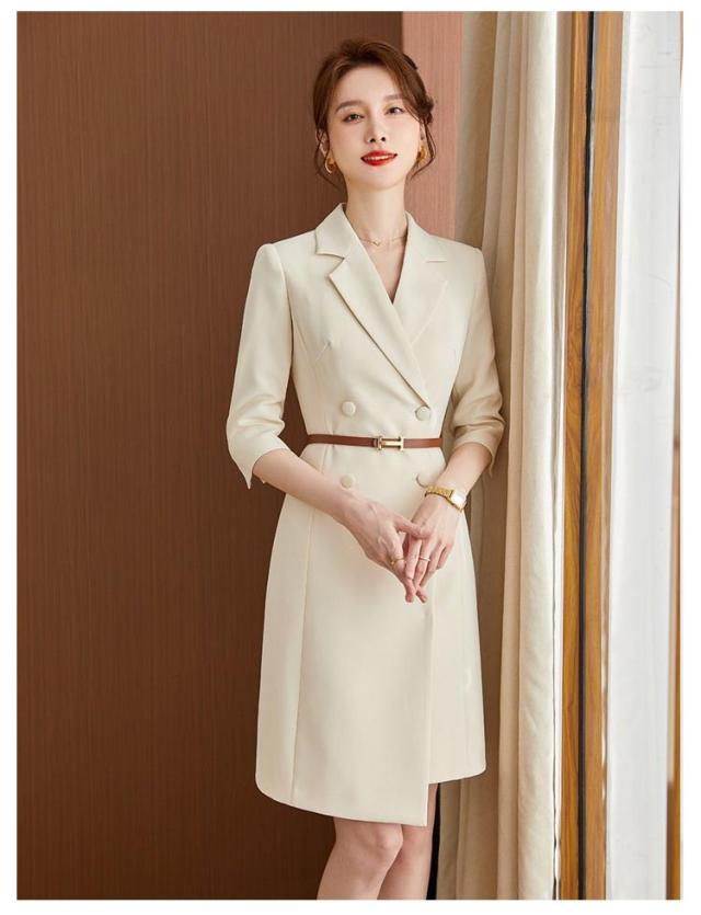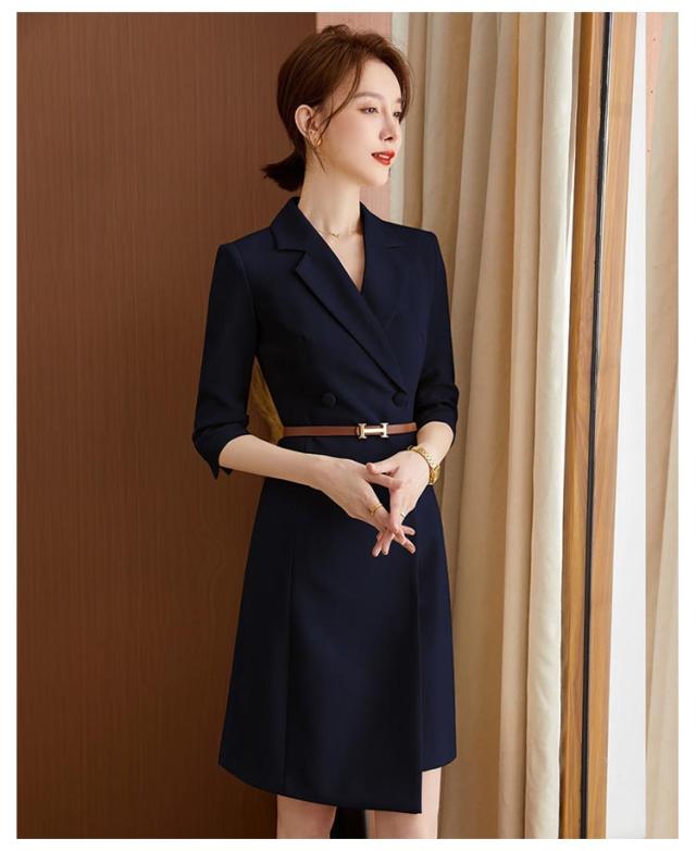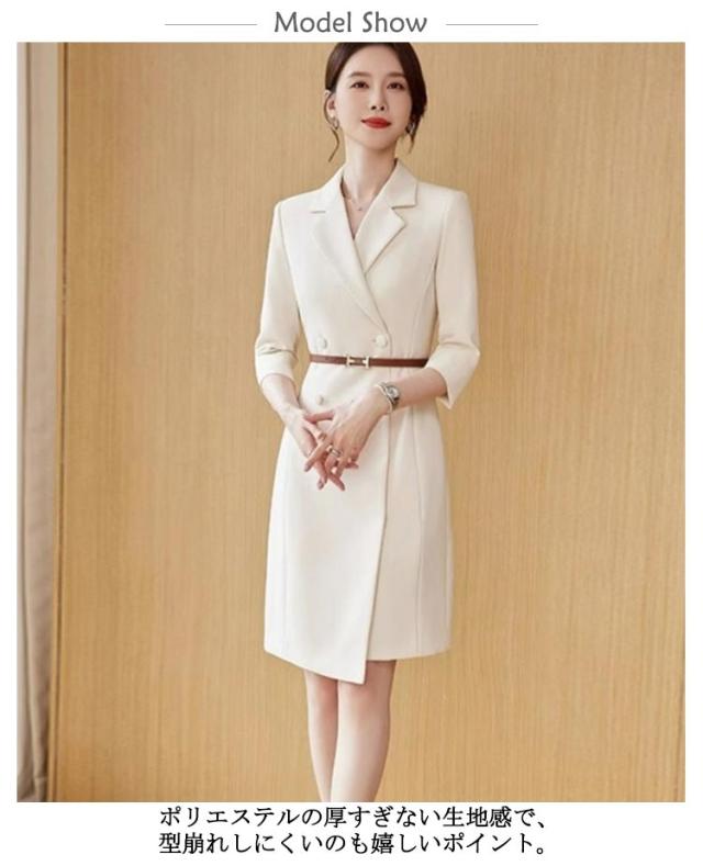 スーツ襟 ワンピーススーツ 裏地付き 七分袖 スーツ ワンピース レディース Vネック 通勤 膝丈 紺 七分袖 ミディアム丈 ウエストベルト付き ベルト付き オフィス 結婚式 OL ビジネス ドレス 洗えるスーツ 着痩せ フォーマル ママ 入学式 卒業式 カジュアル