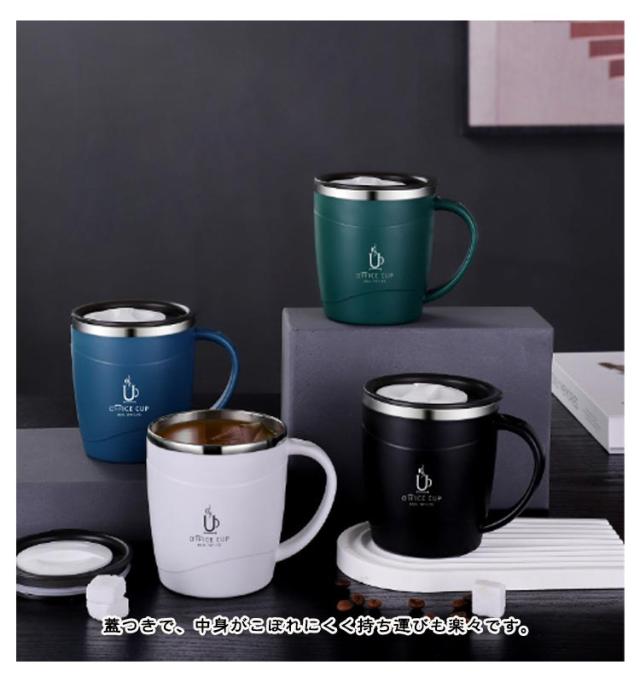| カラーバリエーション、蓋つきステンレスマグ! 真空二重構造で、冷たい飲み物も温かい飲み物も、しっかり適温キープ。 蓋つきで、中身がこぼれにくく持ち運びも楽々です。 おうちでのリラックスタイムや、オフィスでマイカップにおすすめです。 | |