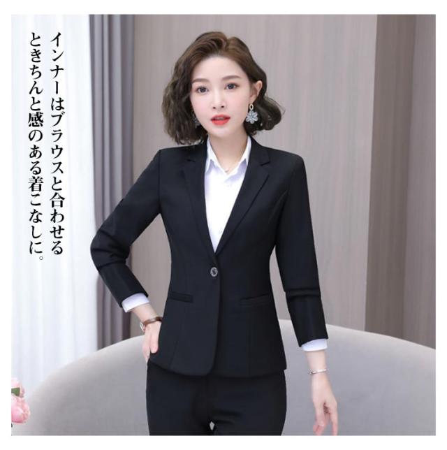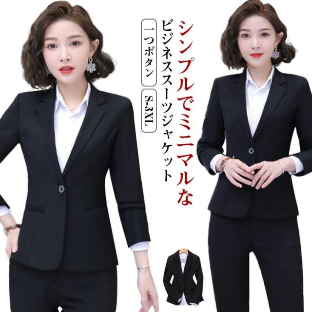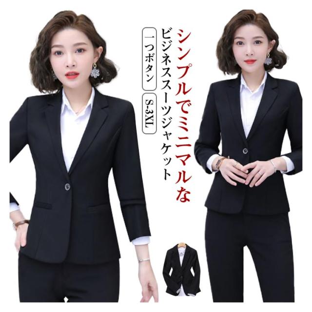 長袖 レディース ビジネススーツ 面接 ママスーツ テーラードジャケット 就活 スーツ スーツジャケット フォーマル 一つボタン 黒 大きいサイズ ジャケット セレモニー 入学式 卒業式 オフィス 通勤 ビジネススーツ 仕事 事務服 OL 春 夏 秋 アウター