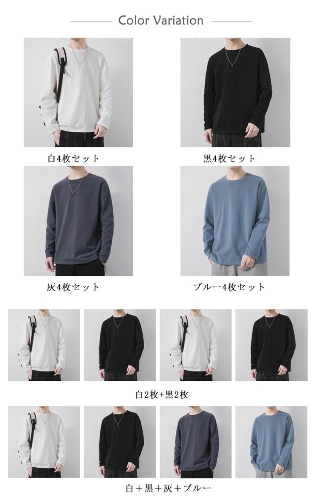 4枚セット tシャツ 無地 メンズ ゆったり ロンT 丸首 クルーネック シンプル 春 秋 Tシャツ 長袖 トップス インナーtシャツ 大きいサイズ 4枚セット ロングtシャツ シンプル 重ね着 カットソー 秋 秋服 秋物 秋冬