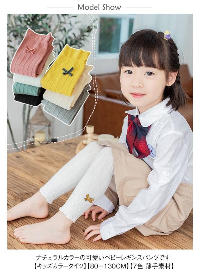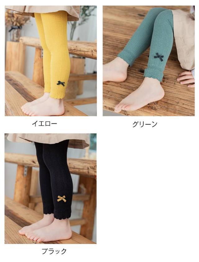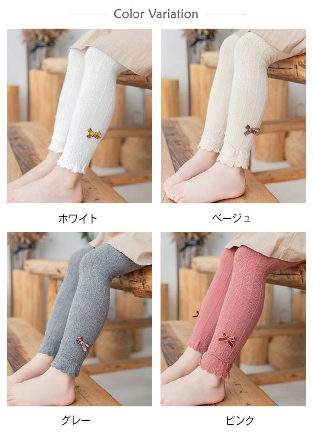 キッズ ベビーレギンス レギンスパンツ 薄手 裾フリル キッズレギンス 春用 ベビー 子供 子供用 ストレッチ 子ども レギンスパンツ 赤ちゃん 女の子 おしゃれ かわいい リボン付き