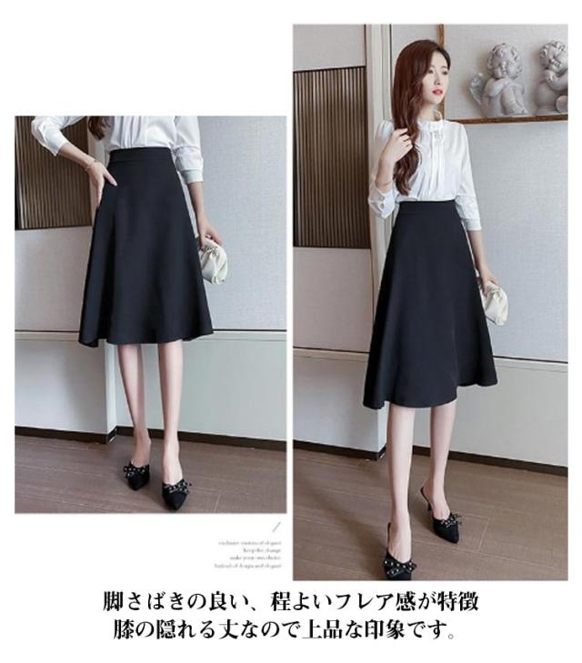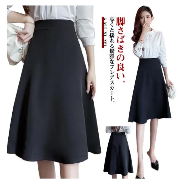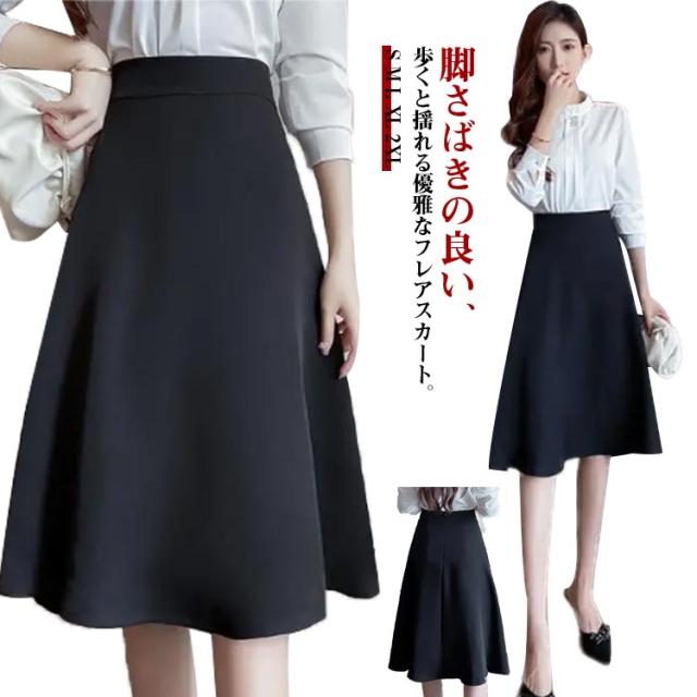 フレアスカート スカート 単品 ビジネス ひざ丈 フレア スーツ ビジネススーツ 膝下丈 無地 スカートスーツ 洗える オフィス 面接 リクルート 通勤 ビジネススーツ 仕事 事務服 Aライン セレモニー 春 夏 秋 冬 大きいサイズ 黒 ブラック