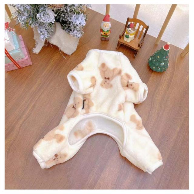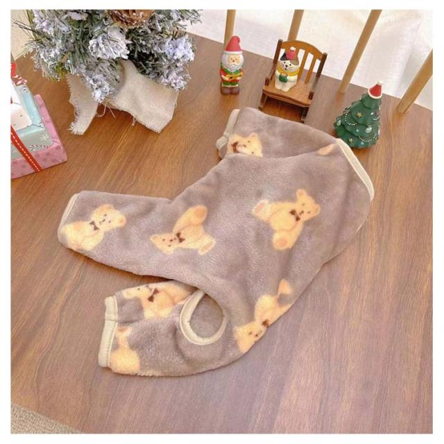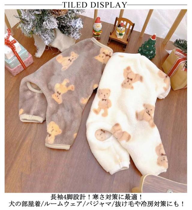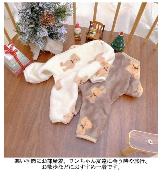 送料無料 春 洋服 ロンパース 犬服 秋冬 柔らかい 部屋着 ドッグウェア クマ柄 熊 長袖 秋 冬 犬の服 ペット服 抜け毛対策 4脚ロンパース ルームウェア 小型犬用 パジャマ つなぎ カバーオール 送料無料 オーバーオール プレゼント 着る毛布 伸縮素材