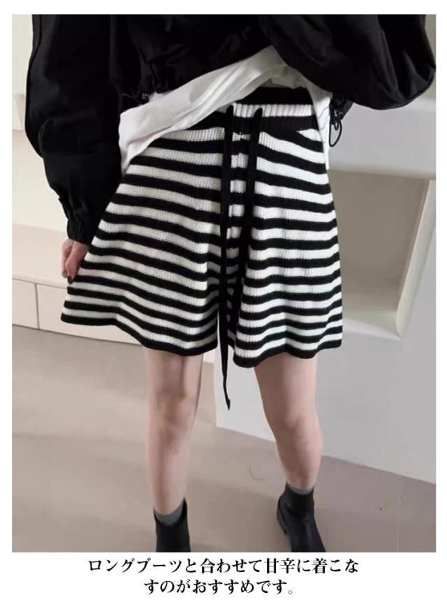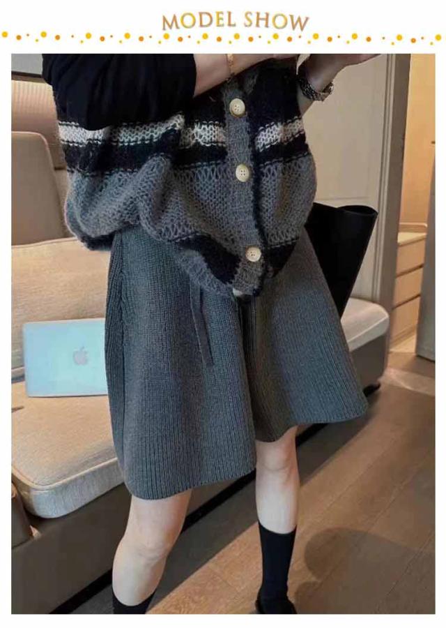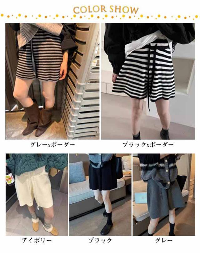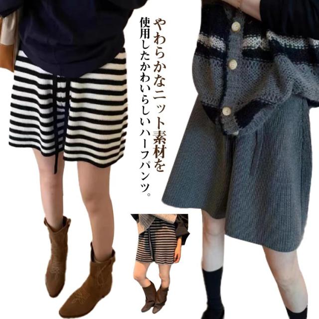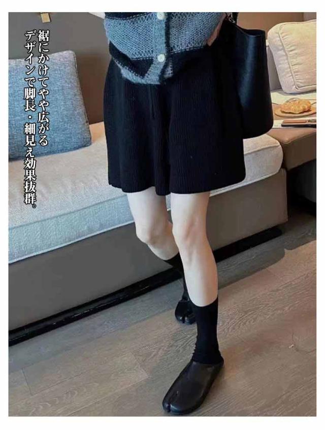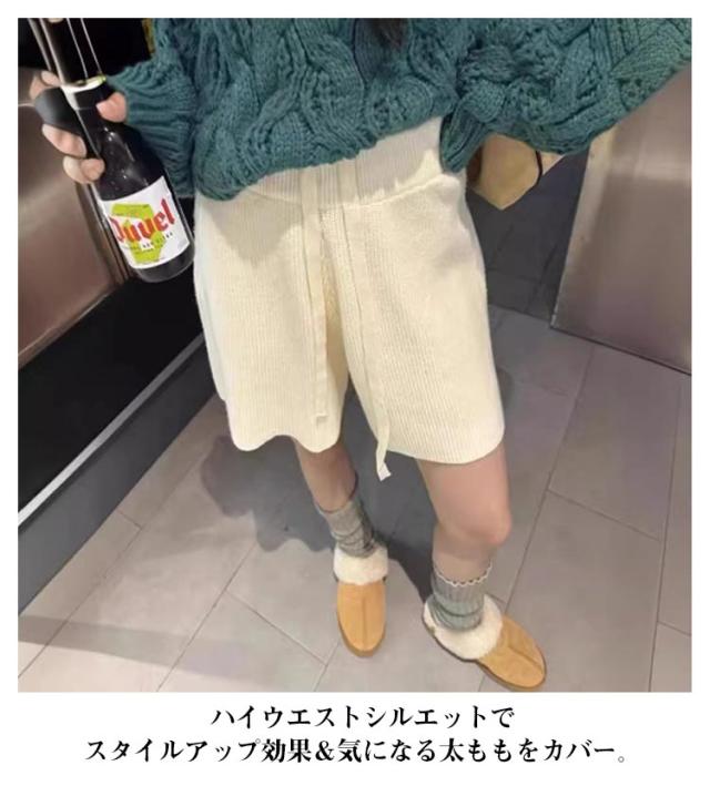 ショート丈 ショートパンツ ワイドパンツ キュロット ニット ハーフパンツ Aライン スカーチョ ボトムス レディース ニット ショーパン ニットパンツ 短ズボン 体型カバー ハイウエスト フェミニン カジュアル