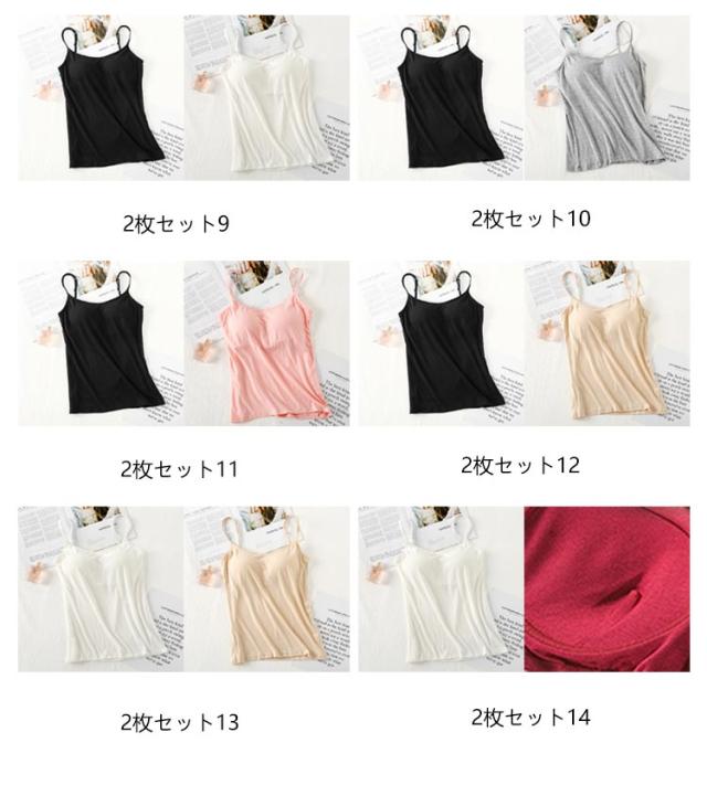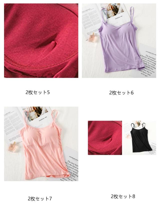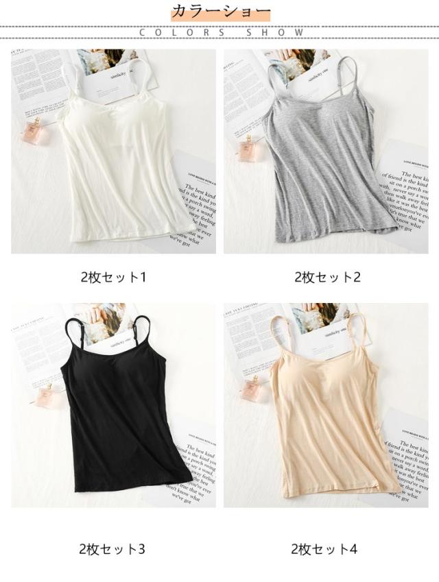 【2枚セット】 楽ちん カップ付き 大きいサイズ 調節可能 ノンワイヤー カップ付きキャミソール ブラ付き インナー キャミソール 【2枚セット】 ルームウェア 部屋着 トップス ブラトップ 丸首 無地 ナイトウェア