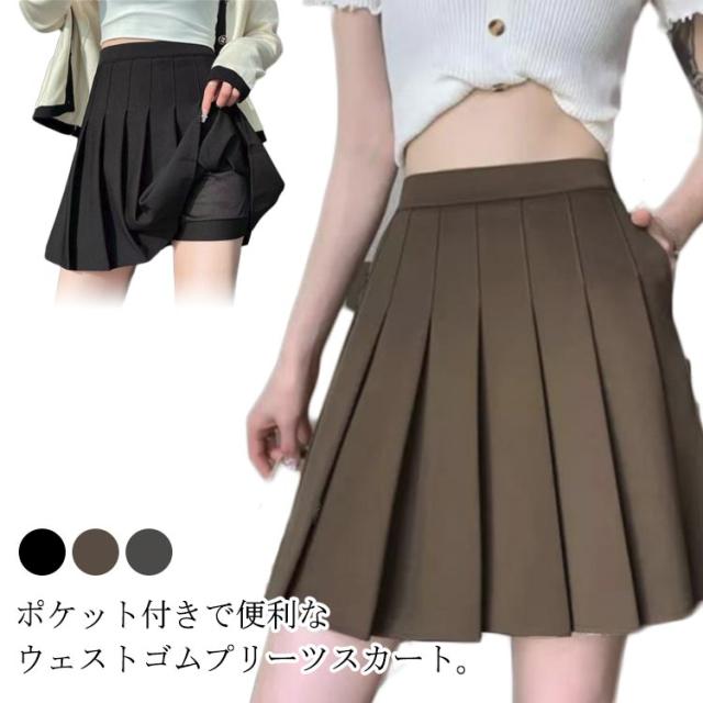 プリーツスカート スカート ウェストゴム ミニスカート レディース ポケット付き 無地 プリーツスカート ひざ上 ショート丈 ミニ丈 ストレッチ ハイウエストスカート 美脚 体型カバー 春 夏 秋 オールシーズン