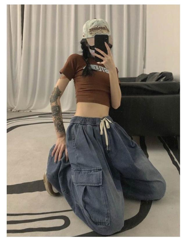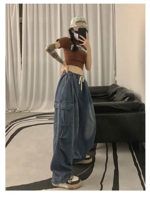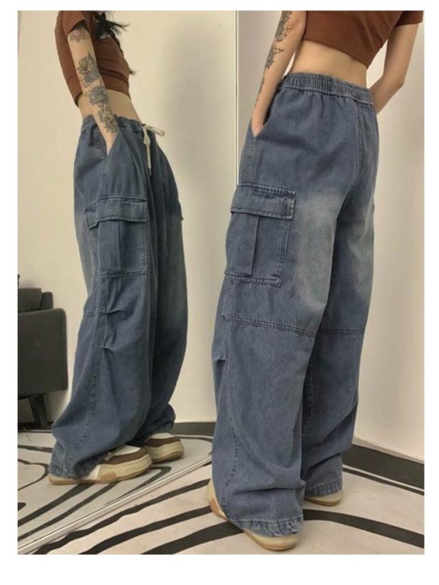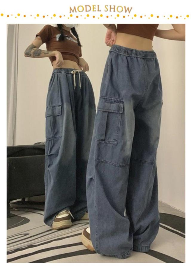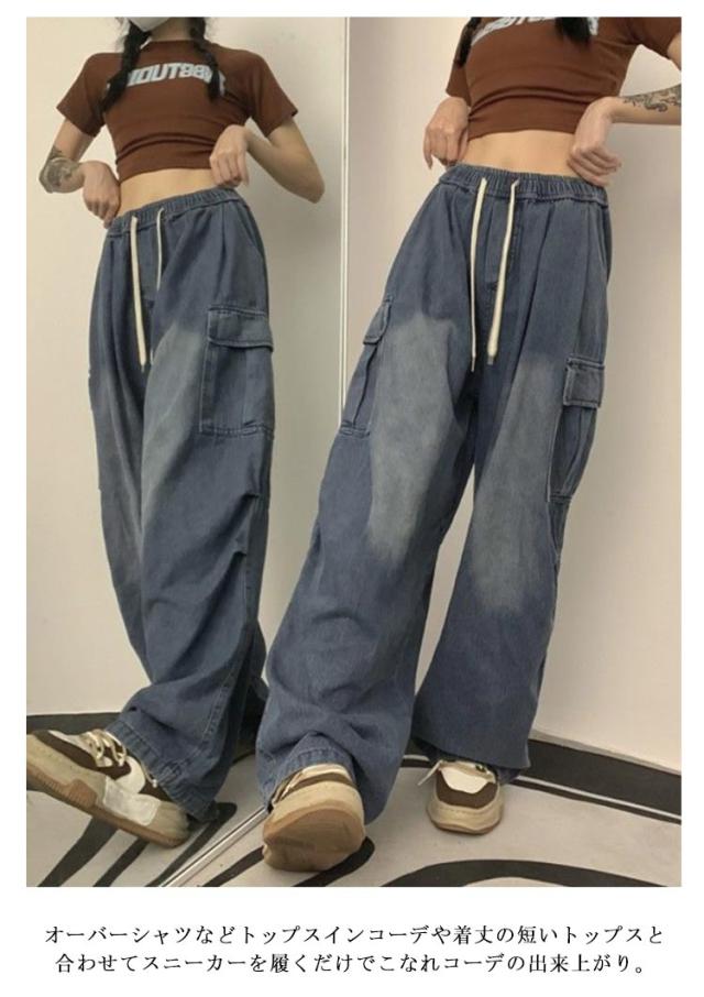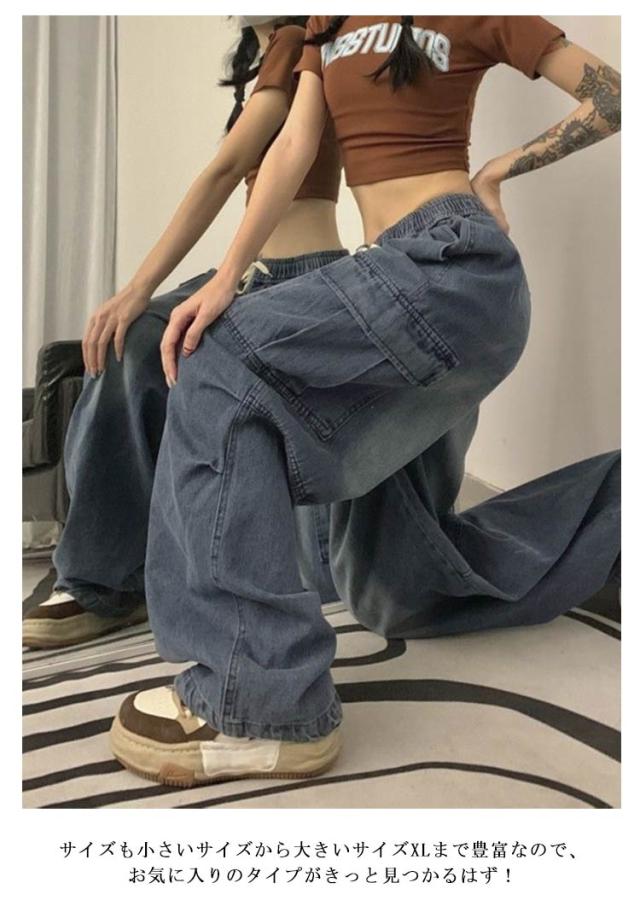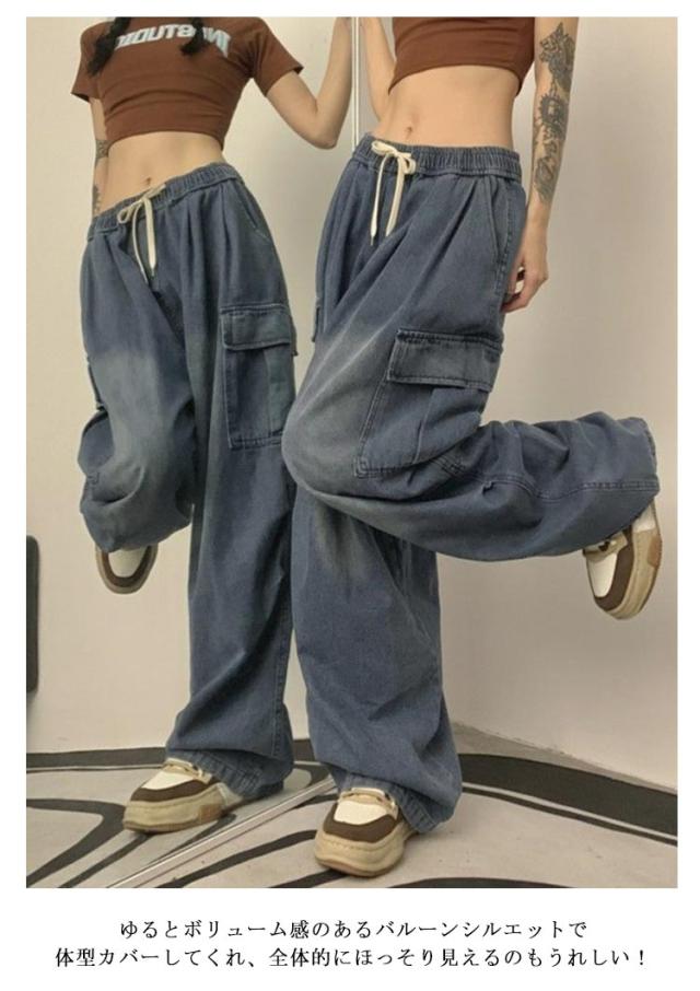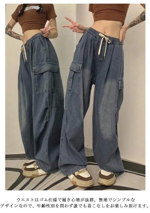 ワイドパンツ ボトムス ワイド レディース カーゴパンツ ゆったり 着?せ カジュアル ダンス衣装 デニムパンツ ストリート ダンスパンツ ロングパンツ 作業着 ダボ ジーンズ 体型カバー 秋 カーゴパンツ カーゴ ウエストゴム カジュアル