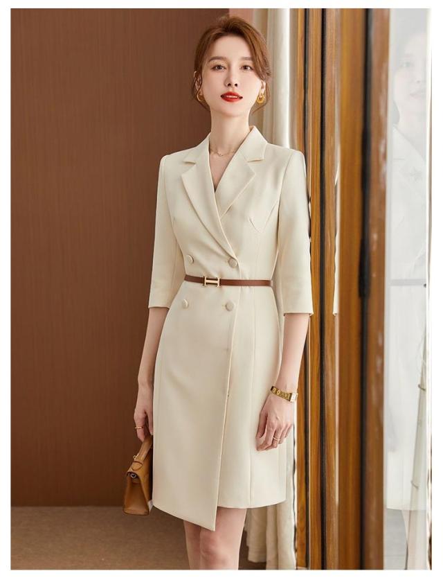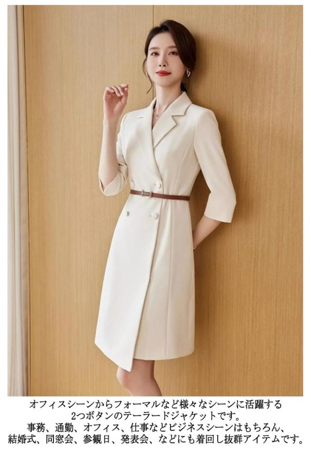 レディース 膝丈 洗えるスーツ 七分袖 裏地付き 白 ベルト付き 入学式 Vネック ワンピース スーツ ドレス ワンピーススーツ ミディアム丈 七分袖 オフィス 通勤 OL ビジネス スーツ襟 結婚式 着痩せ フォーマル ママ ウエストベルト付き 卒業式 カジュアル
