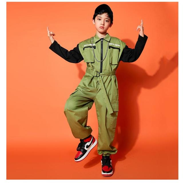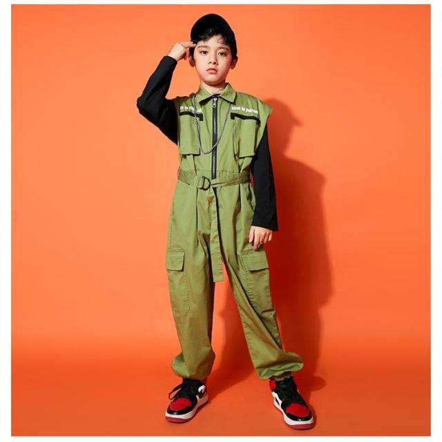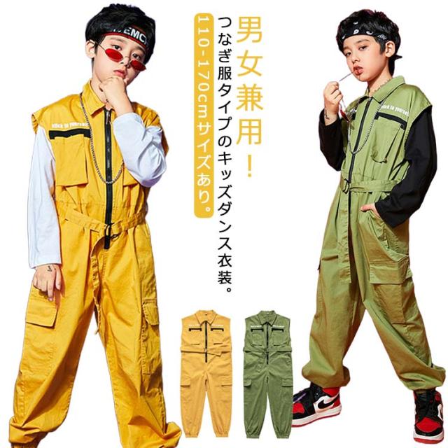 子供 衣装 つなぎ服 ダンス オールインワン 男の子 女の子 キッズ つなぎ服 ダンス衣装 ダンスウェア キッズ ヒップホップ hiphop ジャズ カーゴパンツ ミリタリー セットアップ カバーオール ベルト付き ストリート ユニセックス かっこいい イエロー