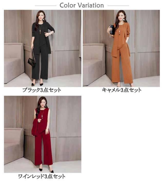 送料無料 着痩せ 3点セット ロングパンツ 春 オフィス フォーマル タンクトップ ジャケット パンツドレス 秋 長袖 大きいサイズ 通勤 レディース OL 送料無料 夏 パンツスーツ ワイドパンツ カジュアル 結婚式 入学式 卒業式 ママ 夏用 きれいめ