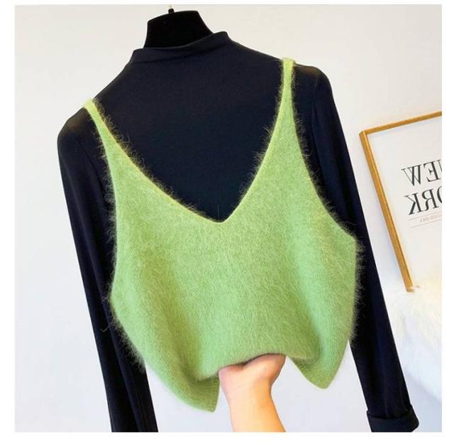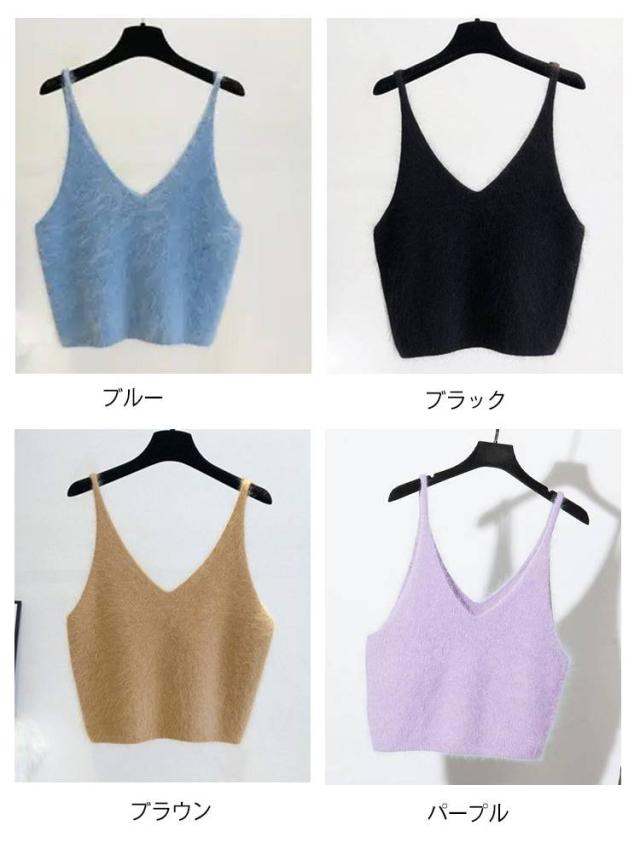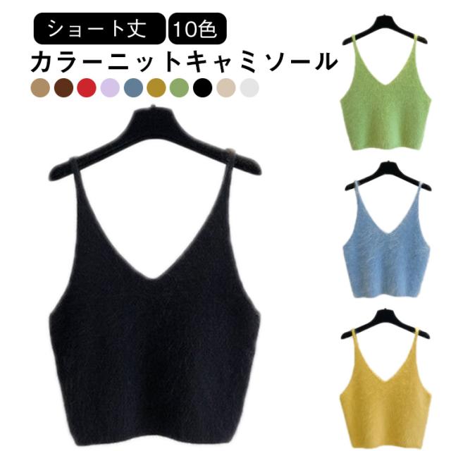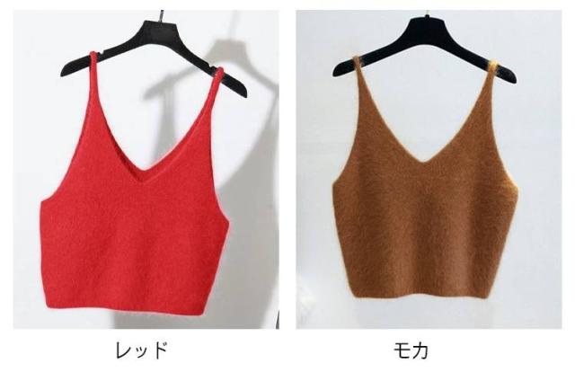 Vネック ニットベスト もこもこ ニットキャミソール ショート丈 ニットトップス ニットキャミ レイヤード キャミソール ふわふわ レディース Vネック 送料無料