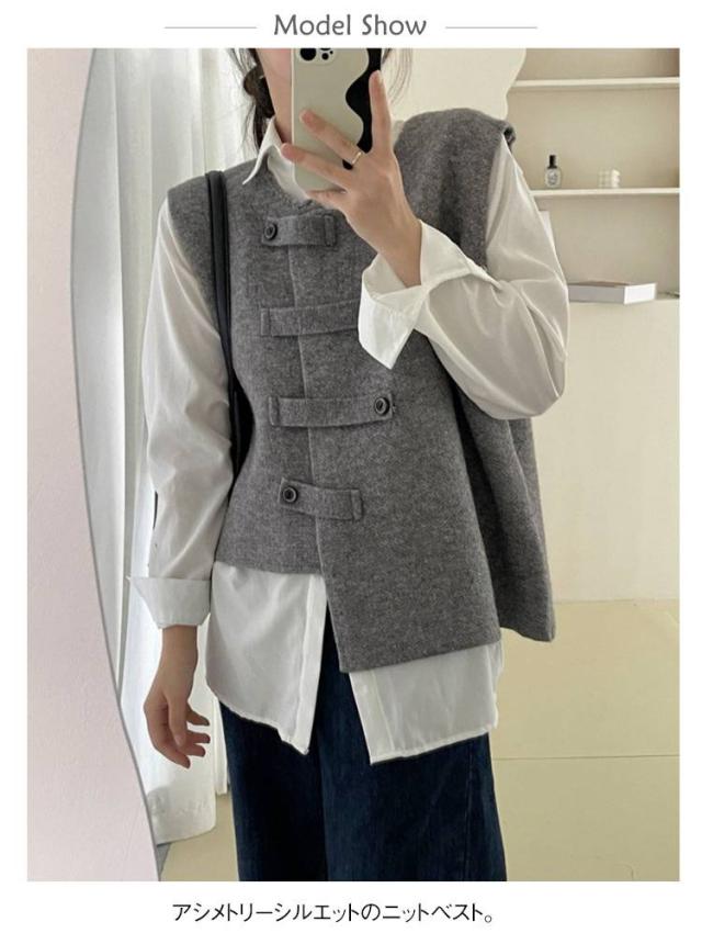 レディース カーディガン 重ね着スタイル 不規則 ベスト トップス ニット 重ね着スタイル アシメトリー おしゃれ 可愛い 春 秋