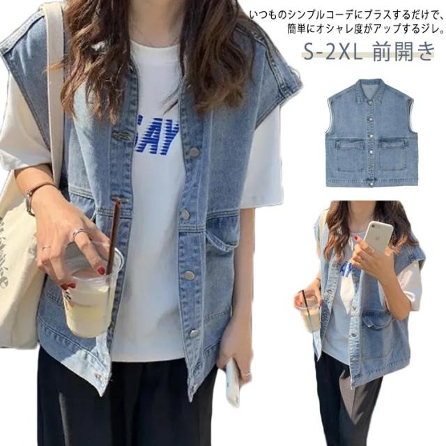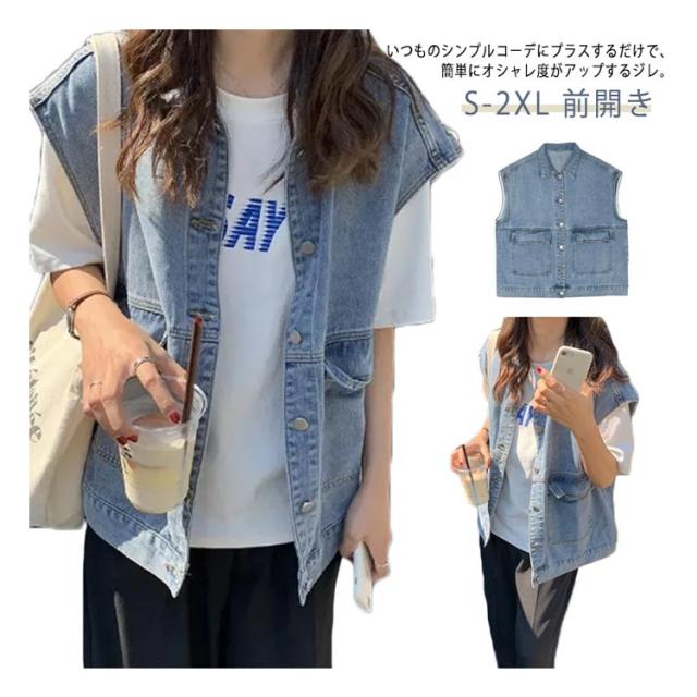 カーディガン デニムベスト 大きいサイズ アウター ノースリーブ 春夏 トップス デニム 袖なし レディース 前開き レディース ベスト 羽織り ゆったり 大きいサイズ