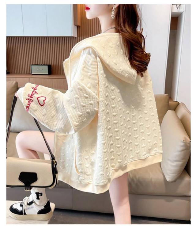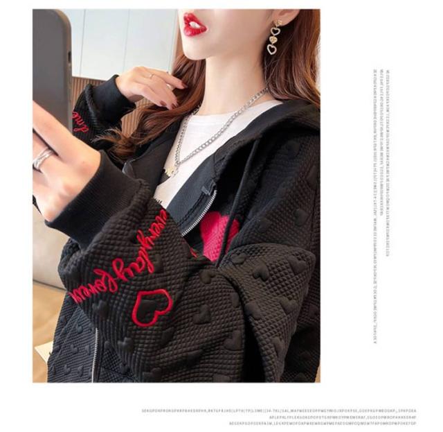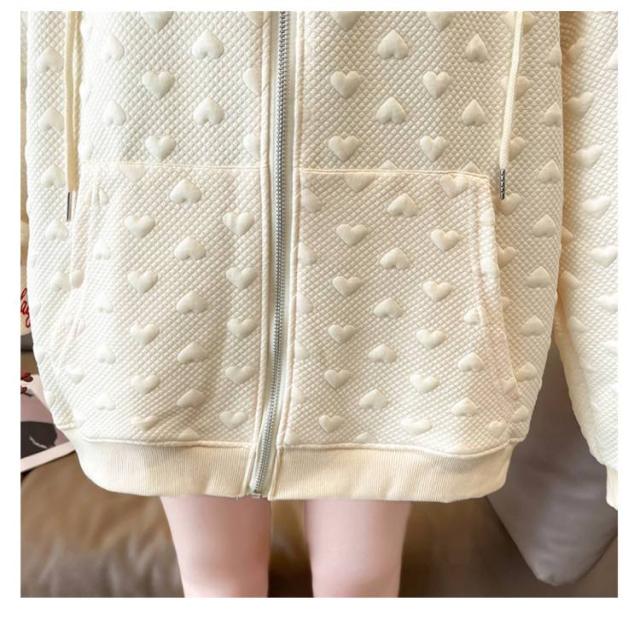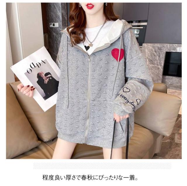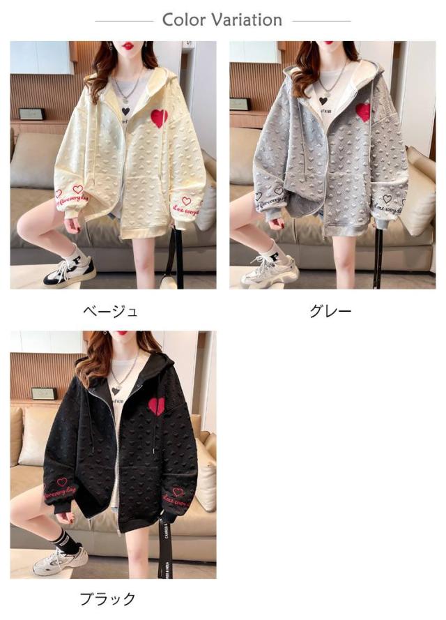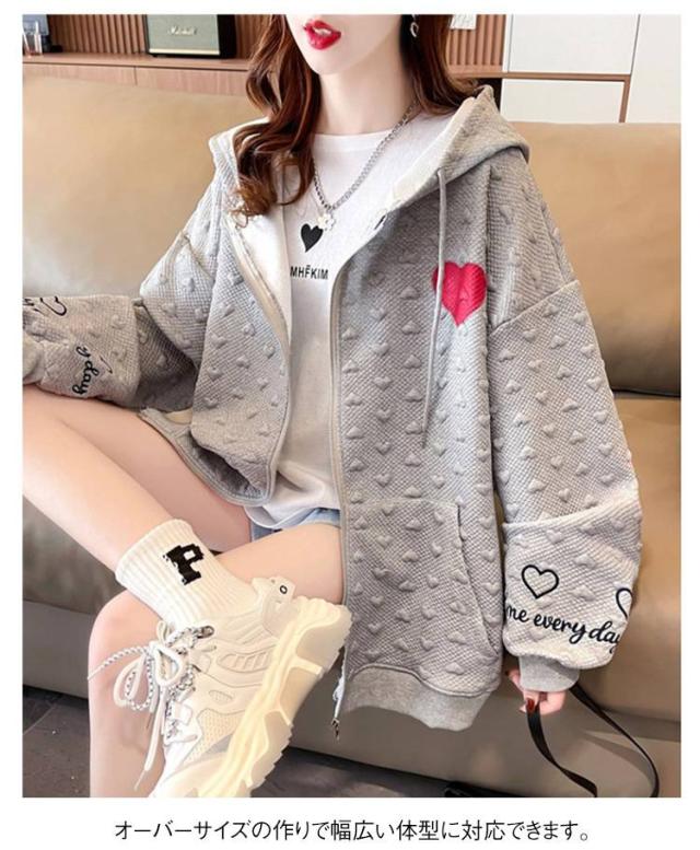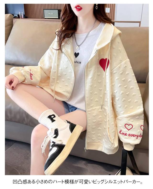 | 凹凸感ある小さめのハート模様が可愛いビッグシルエットパーカー。 オーバーサイズの作りで幅広い体型に対応できます。 程度良い厚さで春秋にぴったりな一着。 | |