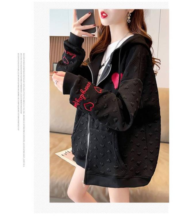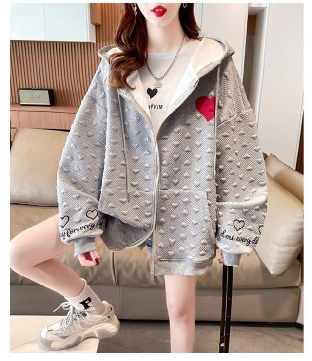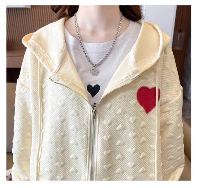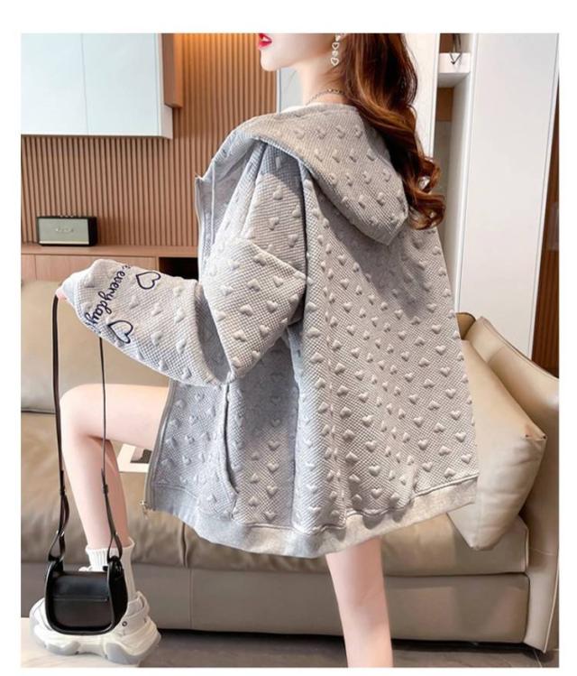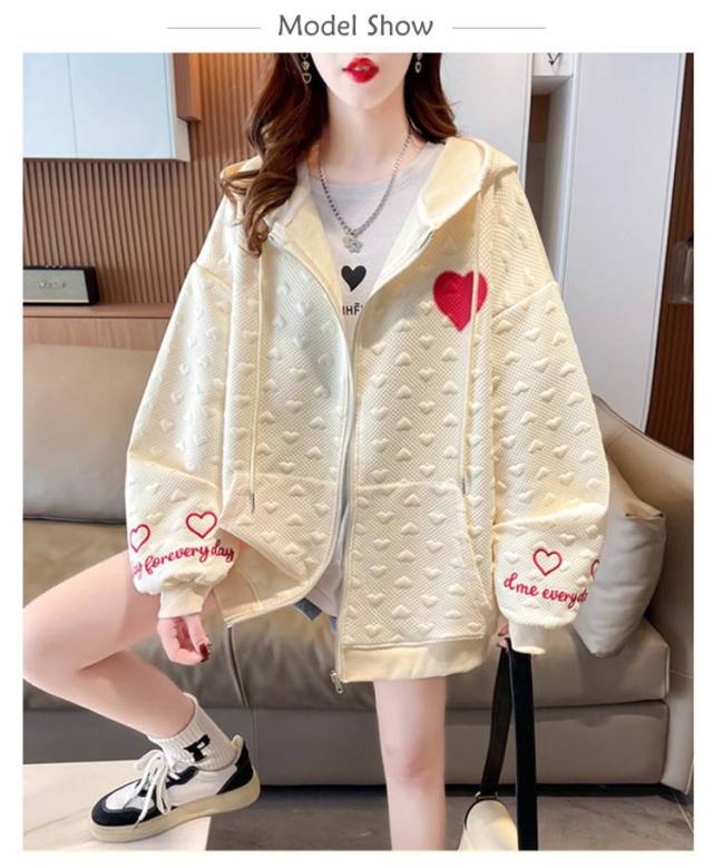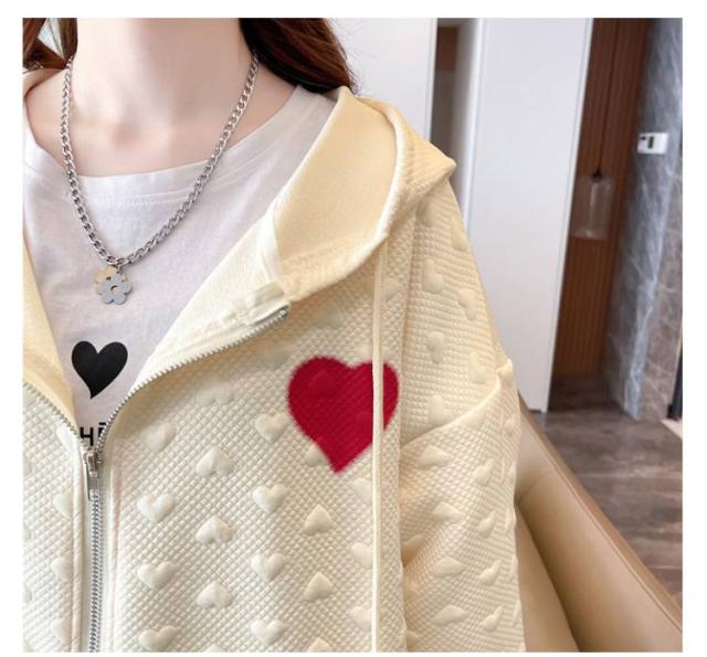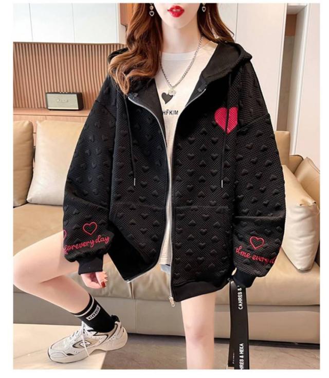 | 凹凸感ある小さめのハート模様が可愛いビッグシルエットパーカー。 オーバーサイズの作りで幅広い体型に対応できます。 程度良い厚さで春秋にぴったりな一着。 | |