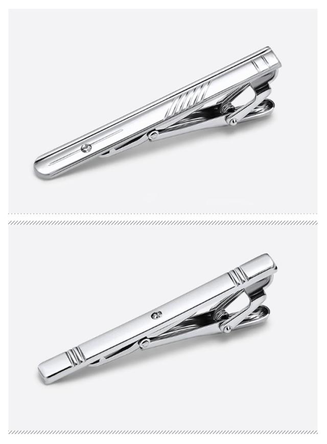 | ネクタイピン 2枚セット。シンプルで飽きの来ないデザインのメンズネクタイピンです。 オーソドックスなネクタイピンなので、仕事や職場、ビジネス、作業着、日常の職場はもちろん、パーティ、デート、結婚式、冠婚葬祭でお洒落に使っていただけます。 | |