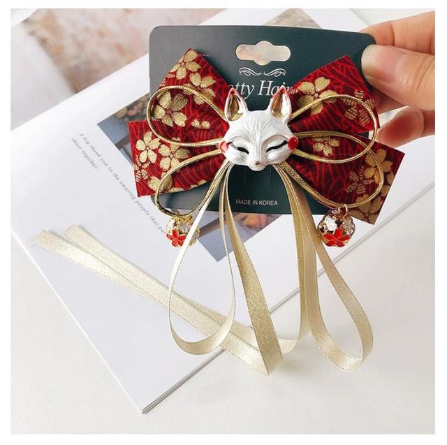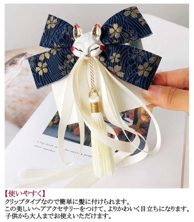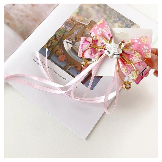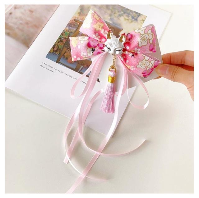 蝶結び リボン ヘアクリップ 振袖 髪飾り 浴衣 キツネ ヘアアクセサリー 髪留め 和装 髪飾り 着物 漢服 成人式 七五三 花火大会 入学式 卒業式 結婚式 写真撮影 赤 ピンク