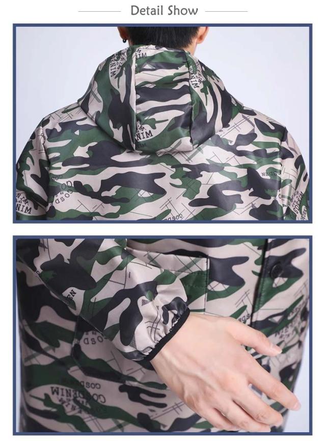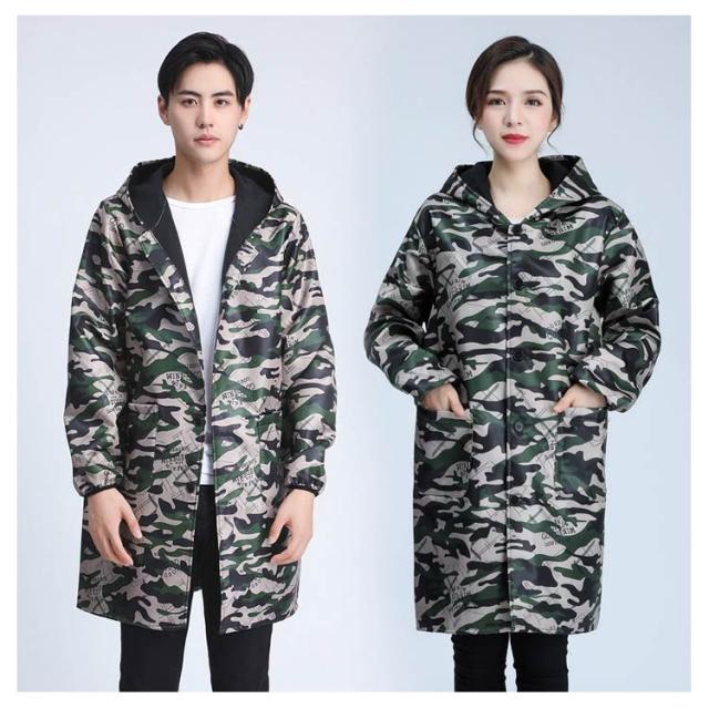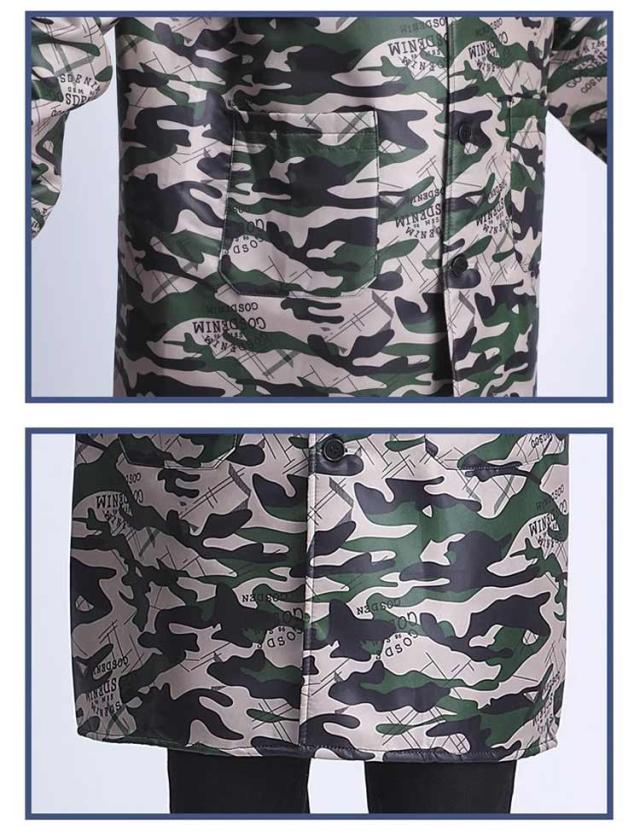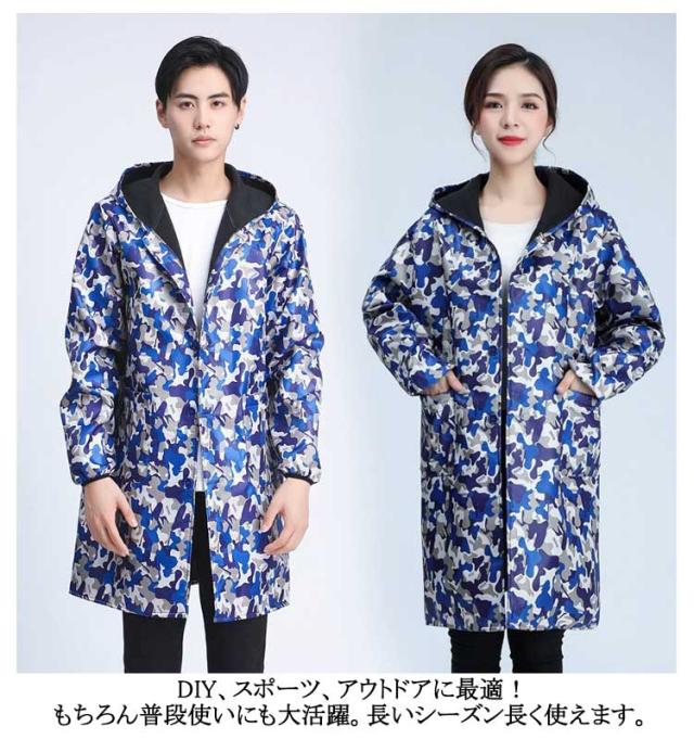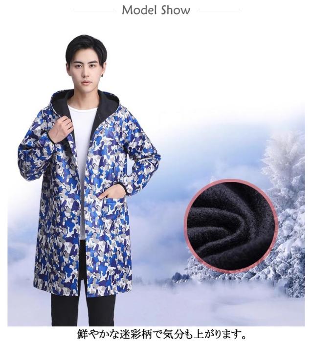カモフラ柄 ジャケット エプロン メンズ レディース 裏起毛 厚手 フード付き 防寒 汚れ防止 防水 防油 迷彩柄 男性用 女性用 ポケット 長袖 マウンテンパーカー 割烹着 作業エプロン 作業着 作業服 シンプル かっぽう着 おしゃれ 保育士 料理用 介護 飲食店 美容院 送料無料