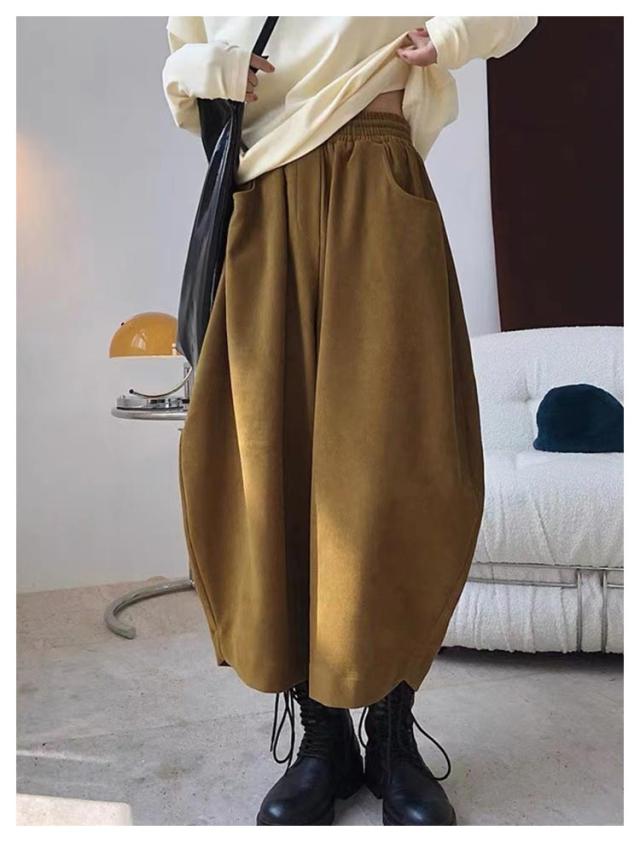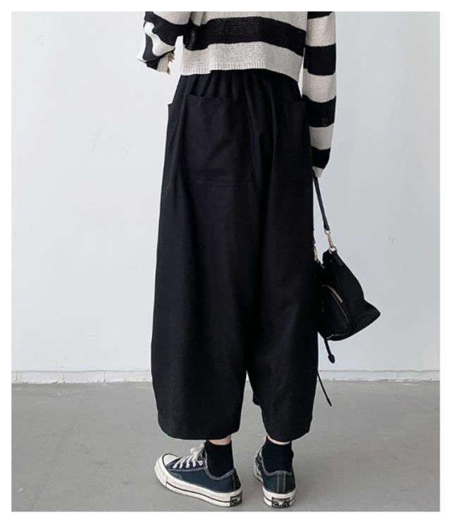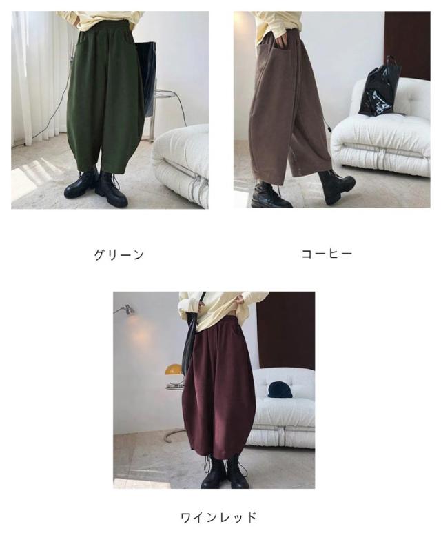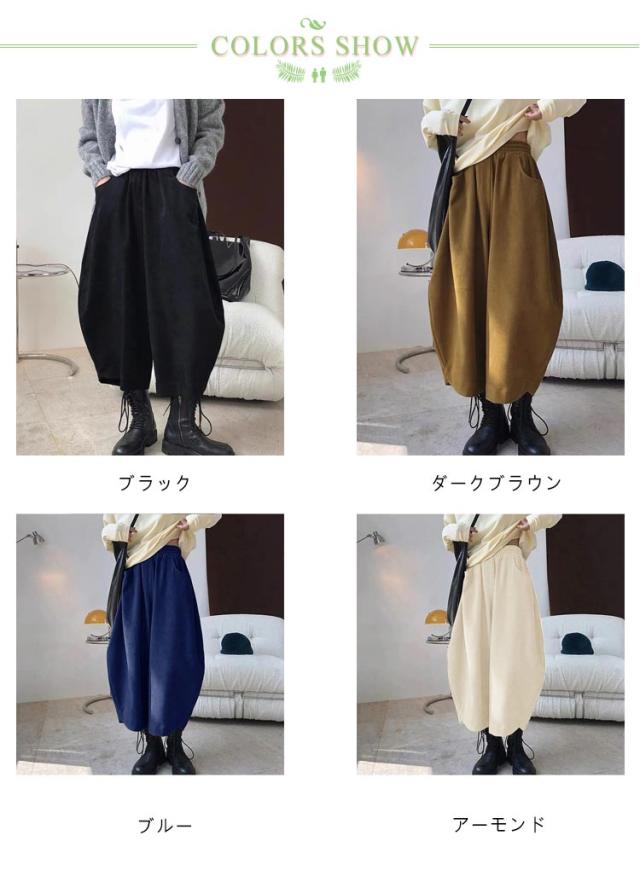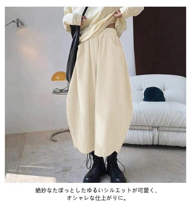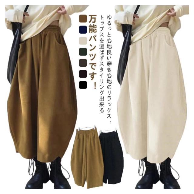 ポケット付き パンツ バルーンパンツ バルーンパンツ ウエストゴム ロング 体型カバー ワイドパンツ ボトムス パンツ ロング丈パンツ 長ズボン ゆったり 9分丈 コクーンパンツ 大きいサイズ 春秋 無地 美脚 大人 黒 カジュアル