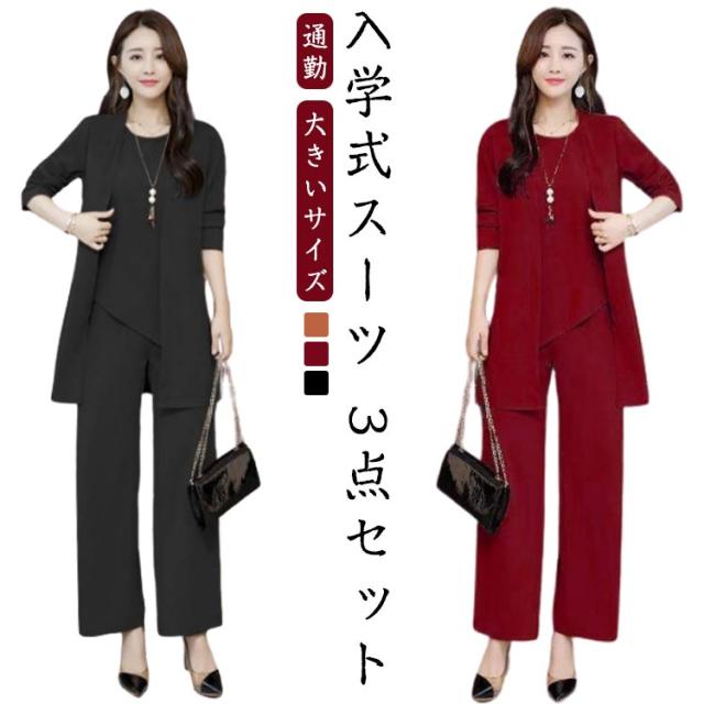 レディース フォーマルスーツ 入学式 ジャケット 入学式 3点セット スーツ 母 スーツ 通学 タンクトップ パンツスーツ 卒業式 通勤 ワイドパンツ 秋 冬 母親 ママスーツ 卒園式 入園式 結婚式 大きいサイズ 30代 40代 50代