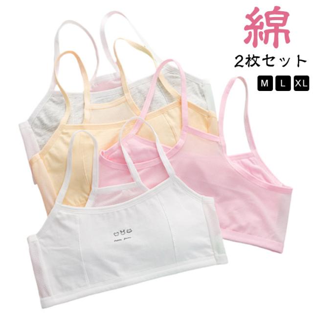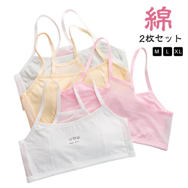 インナー 2枚セット 女子 中学生 ジュニアブラ M XL キッズ 小学生 L ファーストブラ ジュニア かわいい ハーフトップ ブラジャー ノンワイヤー 子供 肌着 下着 スポーツブラ スポブラ 綿 コットン 女の子