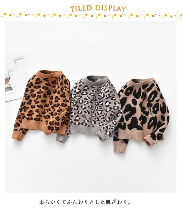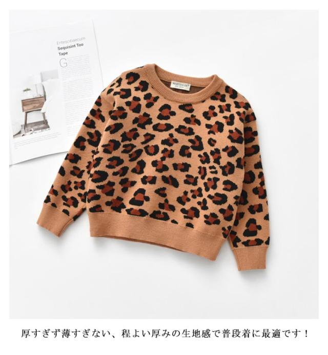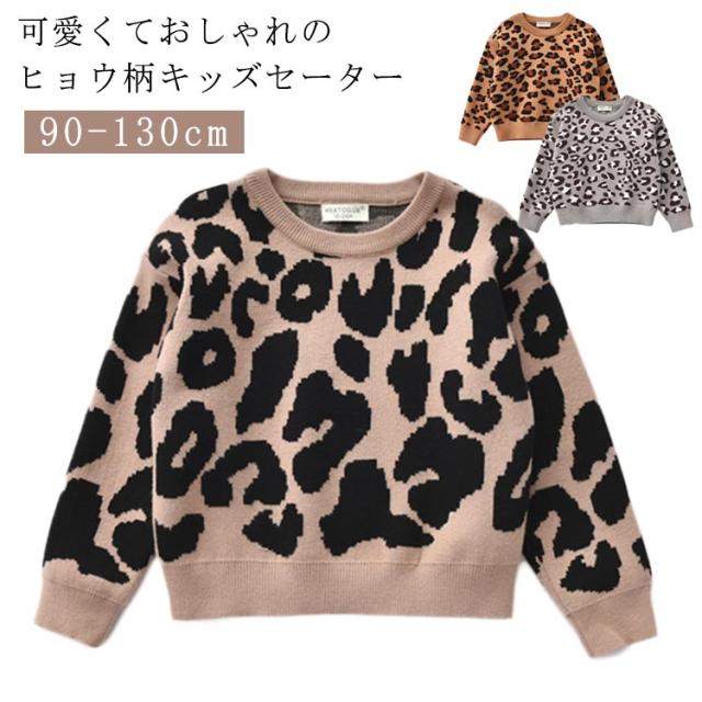 かわいい セーター 子供服 女の子 ヒョウ柄 プルオーバー キッズ服 春服 おしゃれ 可愛い お洒落 男の子 トップス ゆったり キッズ ベビー服 ニット プルオーバーセーター プルオーバートップス 秋冬 キッズ 個性的 重ね着 ギフト