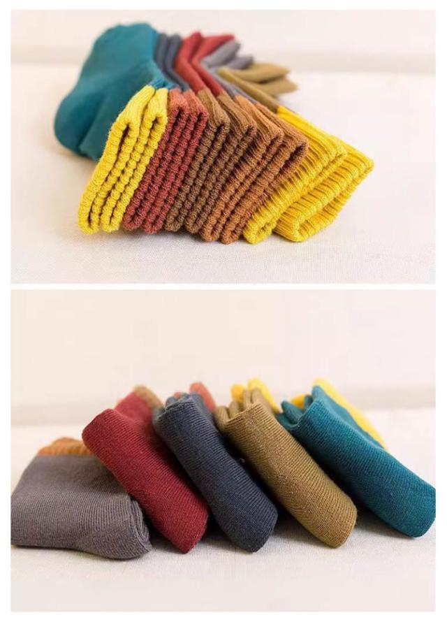 | 3-12歳向け スニーカーと合わせやすい子ども靴下5足組。 履き口はゴム入りで伸びやすくて着脱しやすい。 伸縮性がよいので、履きやすい。 | |