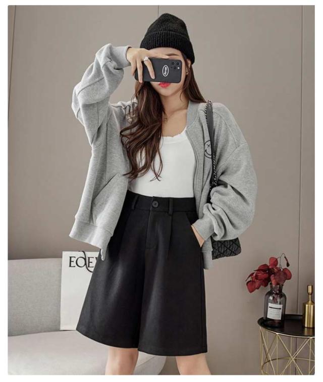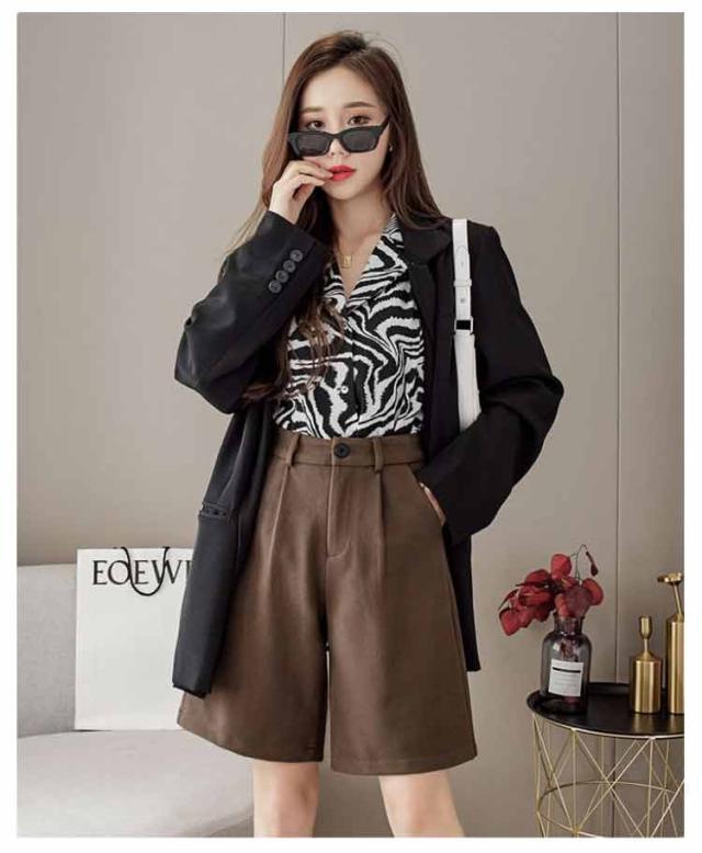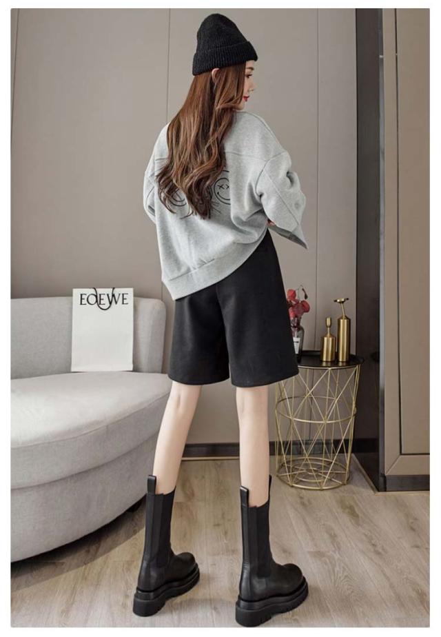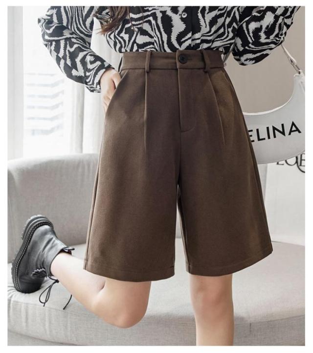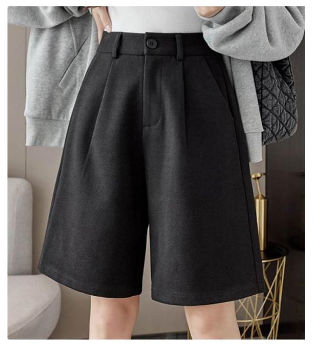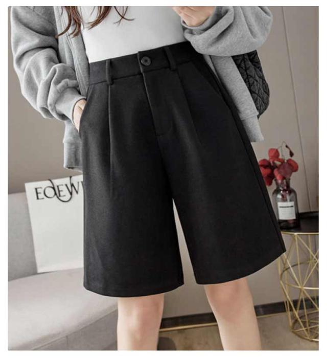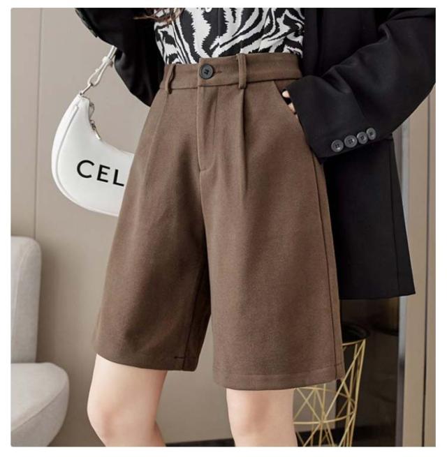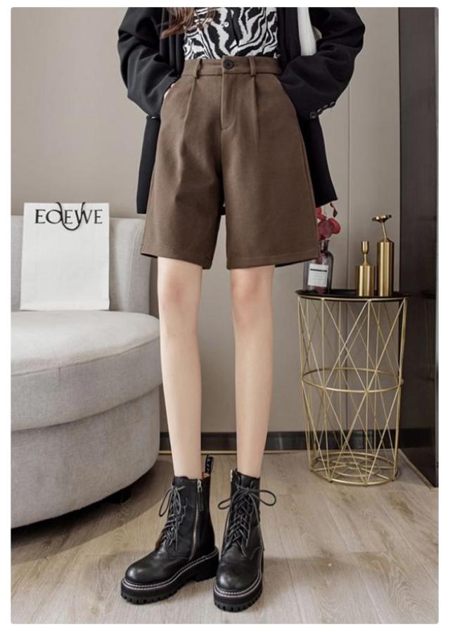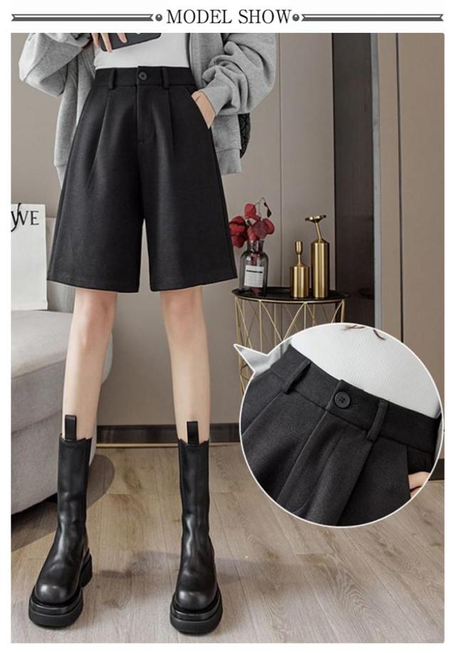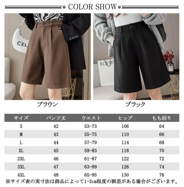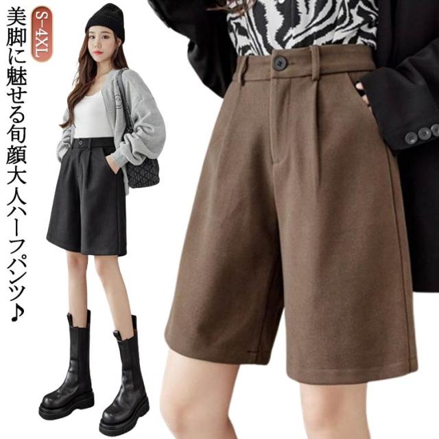 秋 シンプル 大人可愛い ワイドパンツ ウールタッチ 膝丈 五分丈 フェイクウール 厚手 無地 レディース パンツ ショートパンツ 冬 半ズボン カジュアル 秋 冬 大きいサイズ 春 秋冬 ハーフパンツ ブラック ブラウン