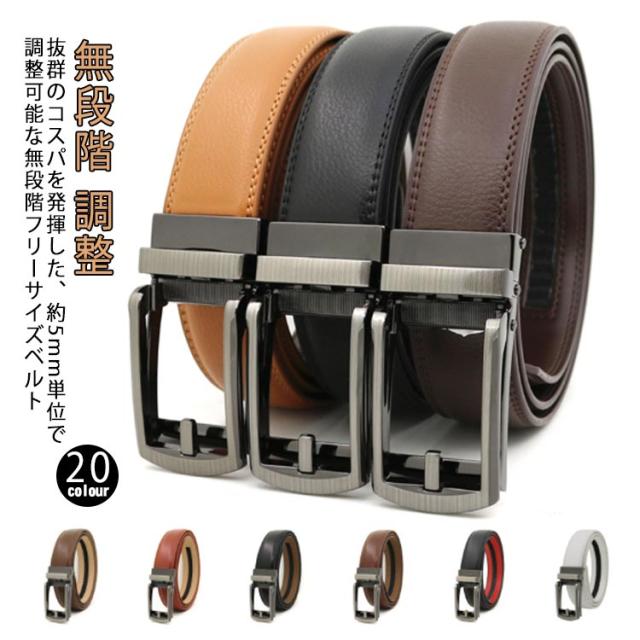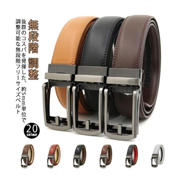 ベルト メンズ 調整 本革 ベルト オートロックベルト 無段階 大きいサイズ レザーベルト 無段階 レザー ビジネス 穴無 長い 穴なし サイズ調整可能 本革 20色 紳士用ベルト