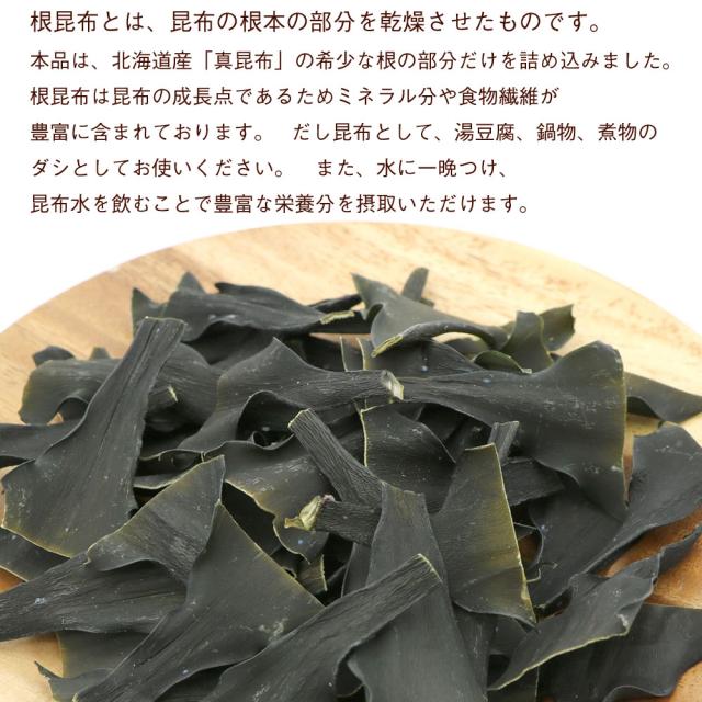 根昆布は昆布の成長点であるためミネラル分や食物繊維が豊富に含まれております。