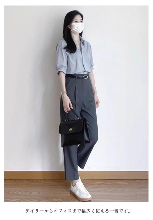 | 新鮮なシャツとテーパードパンツのセットアップ 旬なバンドカラーでこなれ感のある着こなしが完成します。 首周りがすっきりとしたデザインで、上品な雰囲気を演出してくれるのも魅力です。 デイリーからオフィスまで幅広く使える一着です。 | |