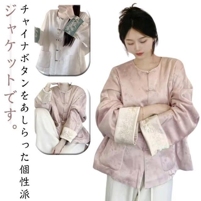 カジュアル アウター 春秋 秋 ジャケット レディース チャイナボタン ショート おしゃれ 新中国風 チャイナ ライトアウター チャイナボタン ブルゾン カジュアル トップス チャイナ風 薄手 春夏 お洒落 ノーカラー パーカー 長袖 羽織 送料無料