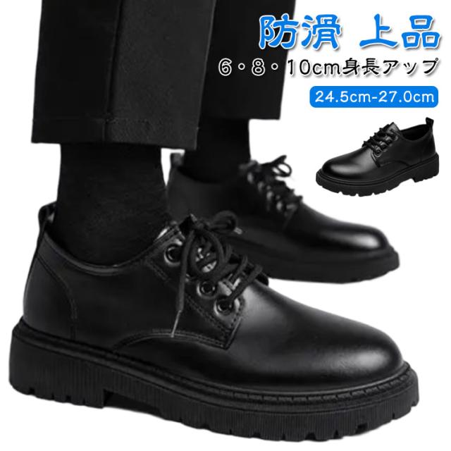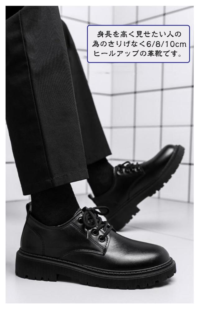 シークレットシューズ 歩きやすい レザーシューズ 身長アップ メンズ 背が高くなる ドレスシューズ レースアップ 厚底 革靴 シューズ 靴 紐靴 卒業式 結婚式 紳士靴 カジュアルシューズ 防滑 6/8/10cmアップ 滑りにくい メンズ靴 韓国風 黒